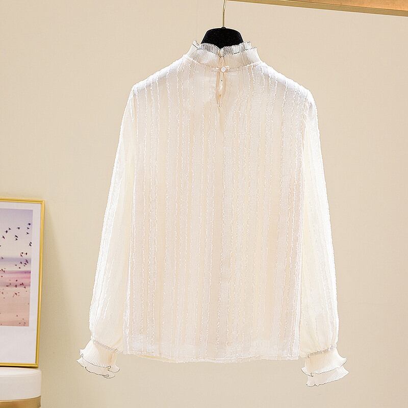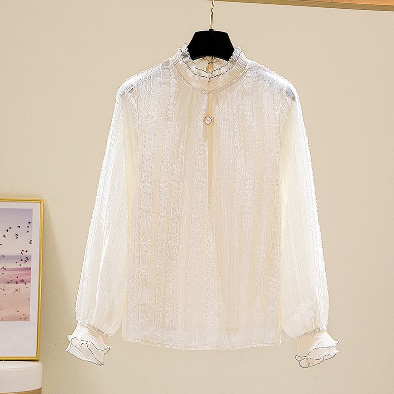 プラスサイズの婦人服 2023 春服の新しい太った姉妹ゆるいオールマッチレースステッチデザインの気質のシャツの女性 大きめサイズ スプリング 春物 8884173000228766