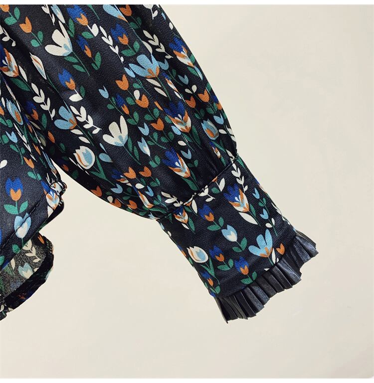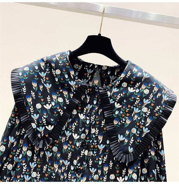 プラスサイズの婦人服 2023 脂肪姉妹春の新しい木製耳プリント人形の襟シャツ花柄長袖小さなシャツの女性 ロング 大きめサイズ スプリング 春物 8884143610672979