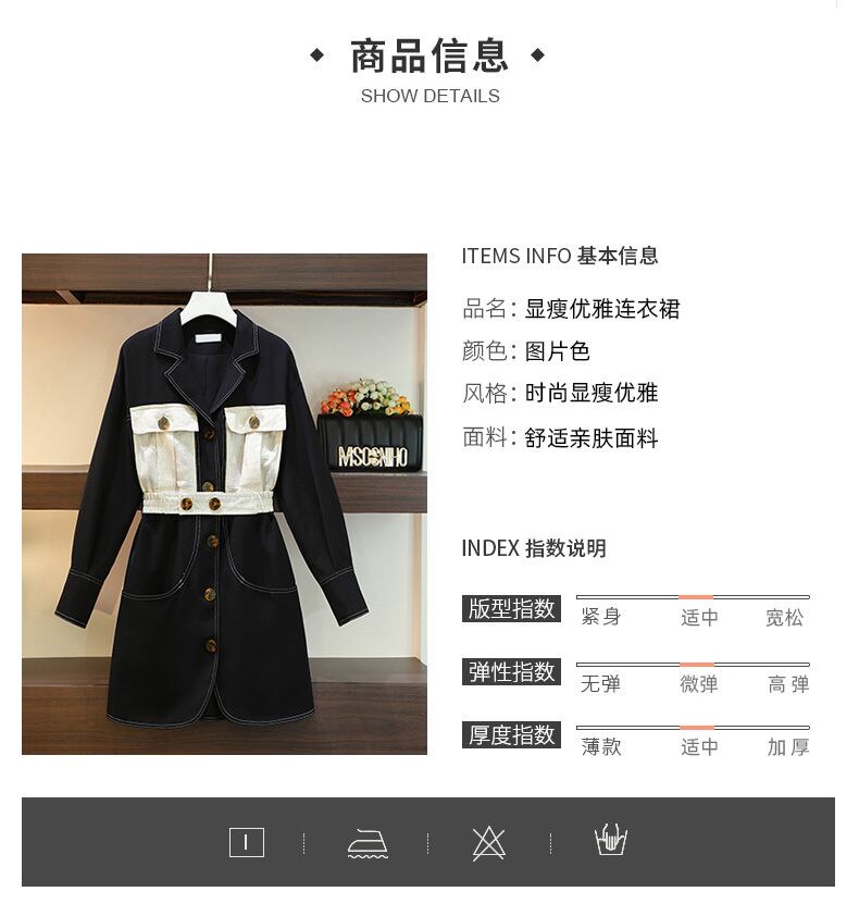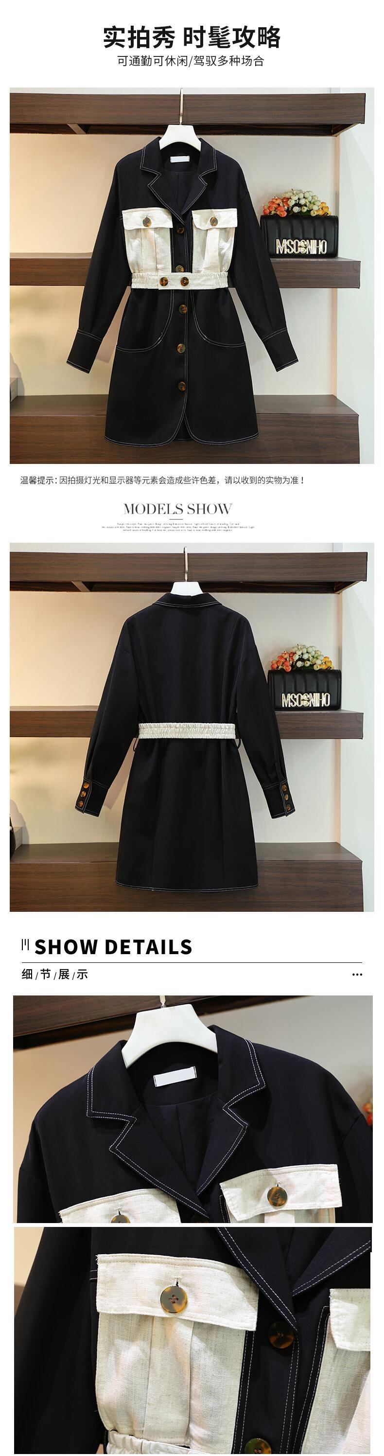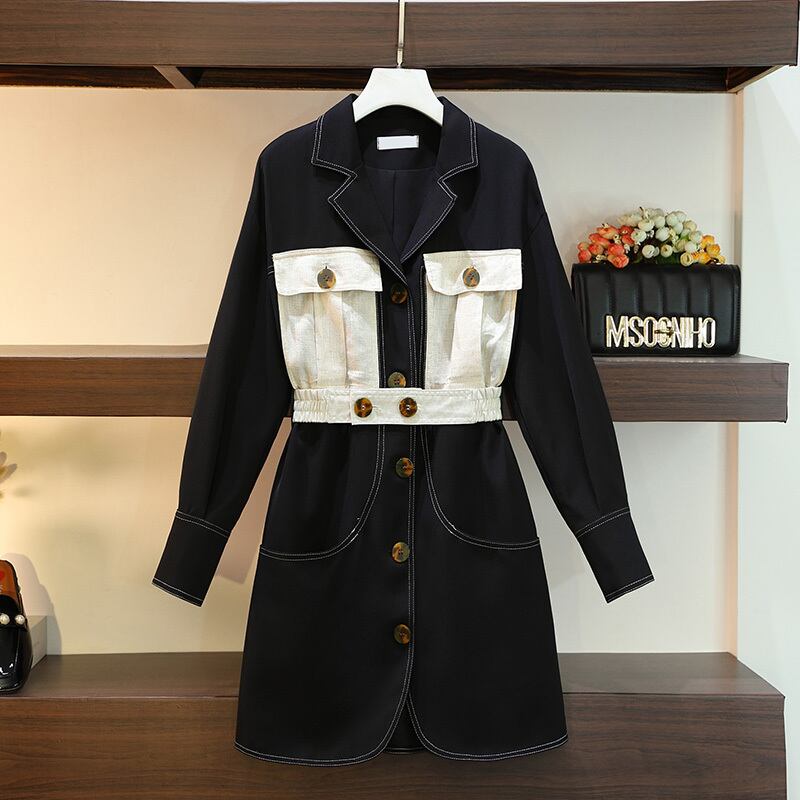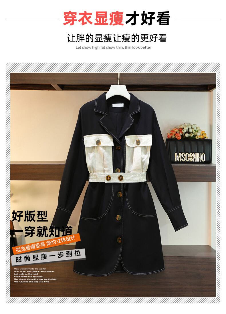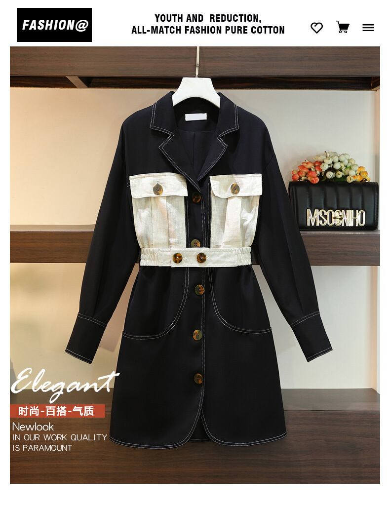 プラスサイズの婦人服 2023 ファットシスター春の新しいファッションヒット配色受信ウエスト長袖スーツの襟のドレスの女性 ロング 大きめサイズ スプリング 春物 8884126464896133