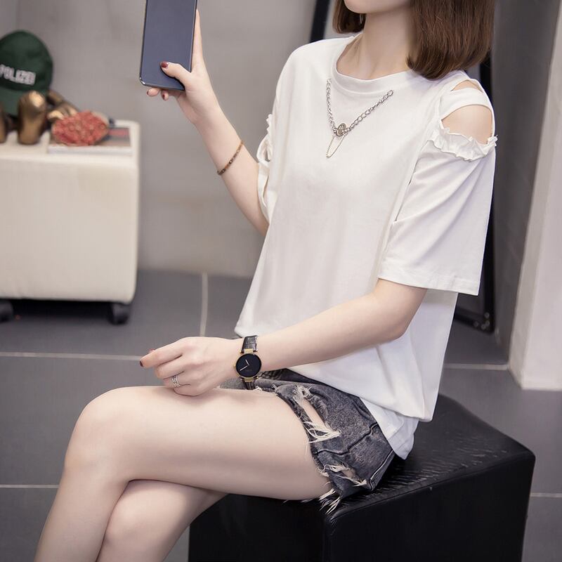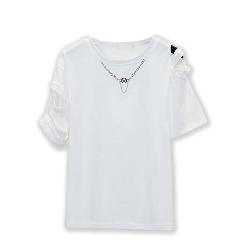 プラスサイズの婦人服 2023 夏の新しいファットシスターファッションオールマッチデザインセンスチェーンニッチ半袖トップ女性 大きめサイズ サマー 夏物 8884172994270661