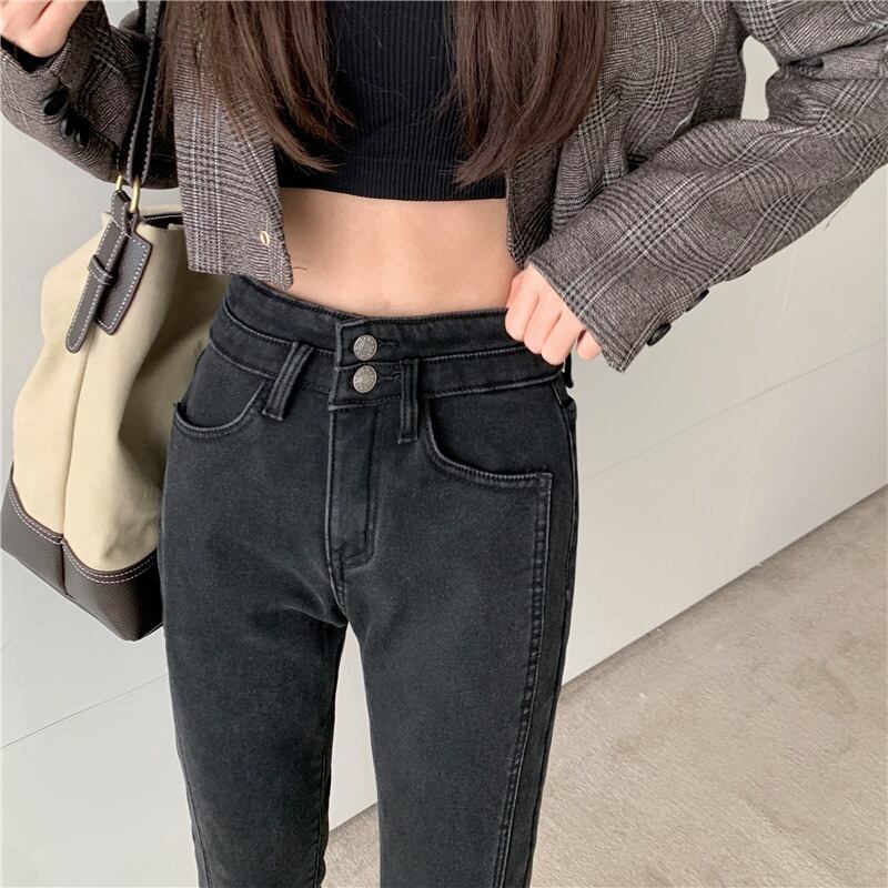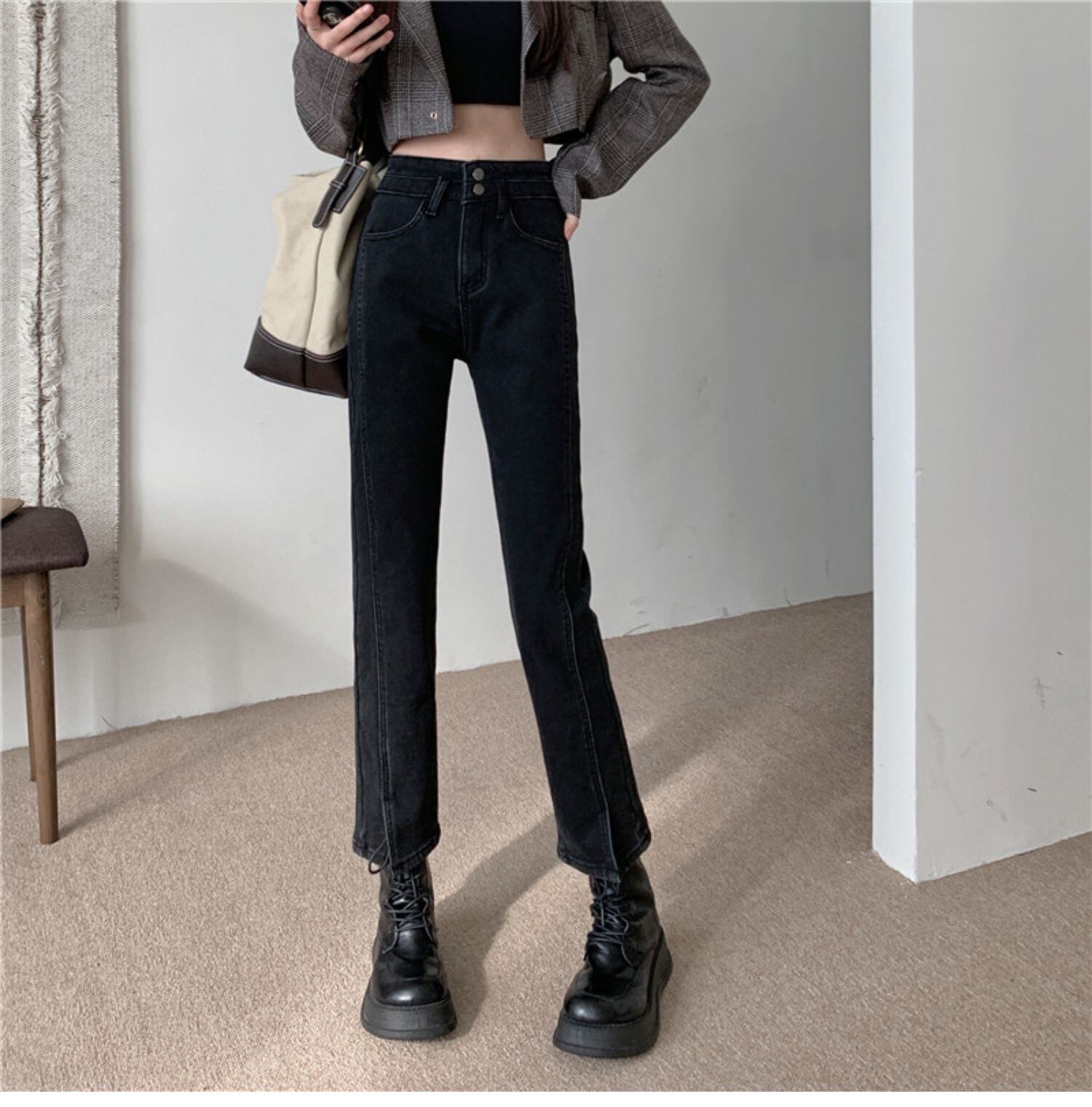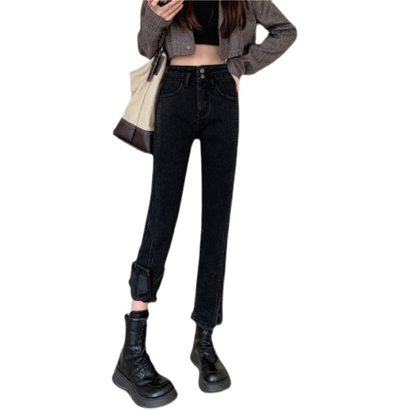プラスサイズの婦人服 2023 ファットシスター春の新ストレッチジーンズハイウエストストレートチューブ痩身スリット 9 点の女性のパンツ ハイウェスト 大きめサイズ スプリング 春物 8884137504922010