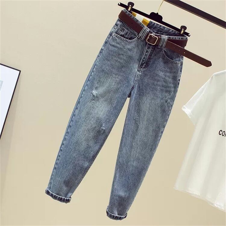 プラスサイズの婦人服 2023 脂肪姉妹春の新しいズボン緩いハーレムパンツハイウエスト大根ストレートジーンズ女性 ハイウェスト 大きめサイズ スプリング 春物 8884152826962205