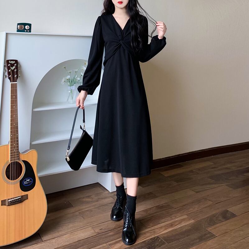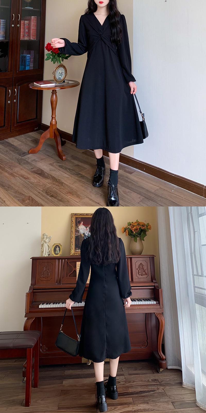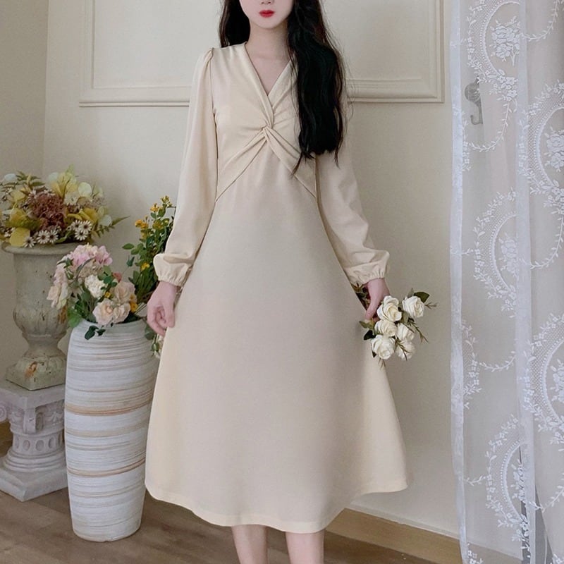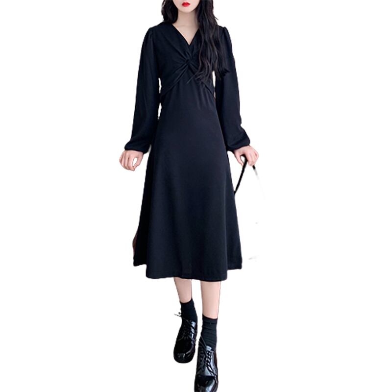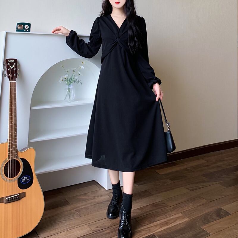 プラスサイズの婦人服 2023 トレンディな女性の春の新しい太った姉妹は、腰を閉じて薄い v ネックのドレスの女性に見えるように背中にジッパーが付いています 大きめサイズ スプリング 春物 Vネック 8884132208713146
