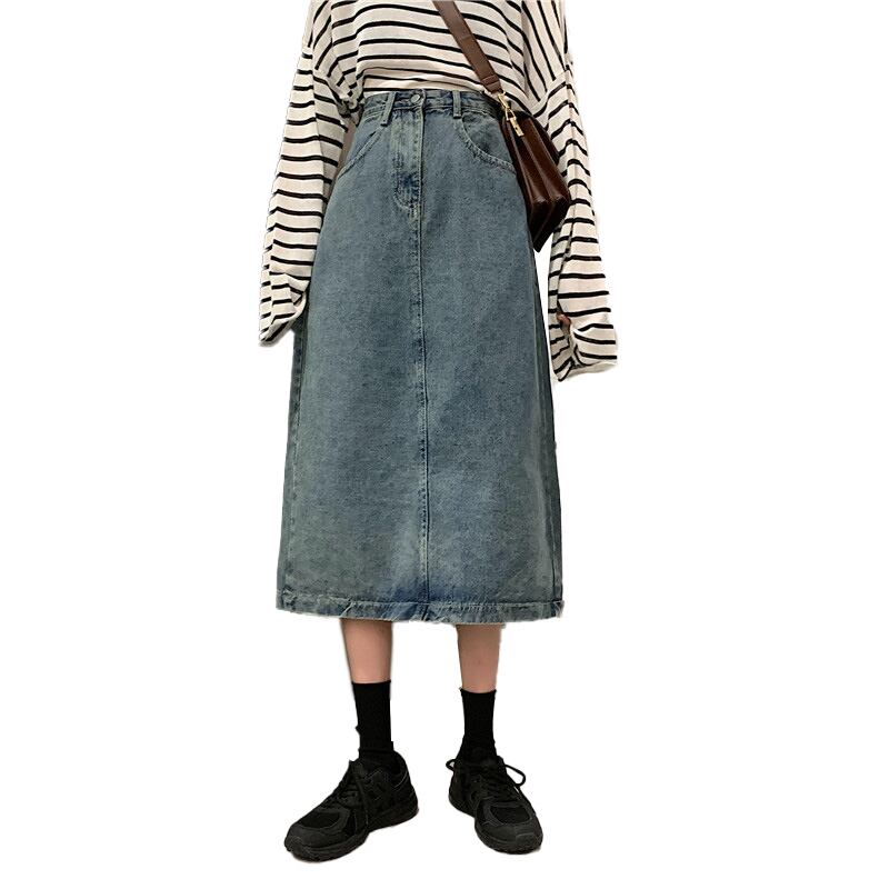 大きいサイズの婦人服 2023 春の新作オールマッチ スカート ファット シスターズ ヒップをカバーして細く見えるミッドレングス ハイウエスト デニム スカート 大きめサイズ スプリング 春物 8884162604778279