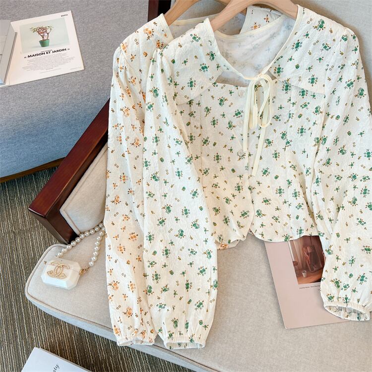 大きいサイズの婦人服は2023年春の新しいファットシスターの年齢を減らし、薄い気質のデザインの花柄のフレンチシフォンシャツです。 大きめサイズ スプリング 春物 888412230527016