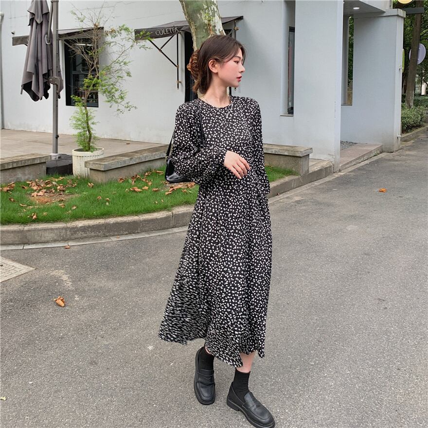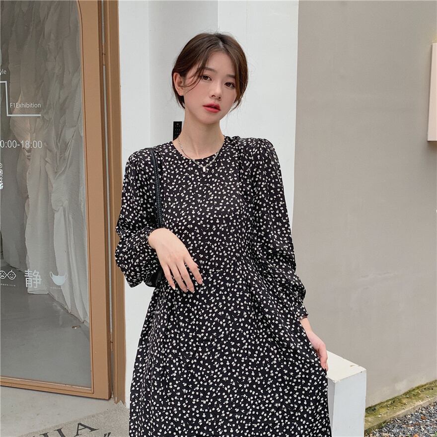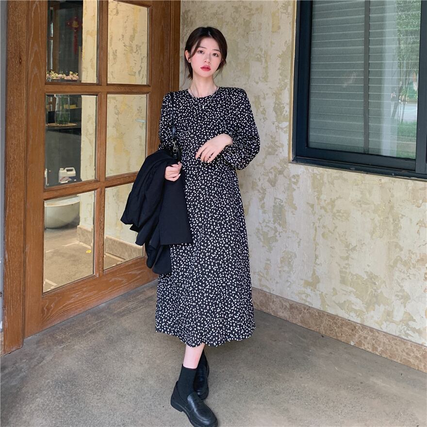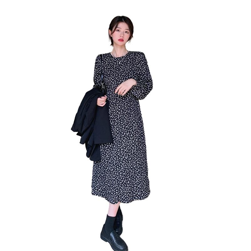 プラスサイズの婦人服 2023 春の新ファッション痩身シフォンロングスカート花底長袖ドレス脂肪姉妹 大きめサイズ スプリング 春物 花柄 8884171714592677