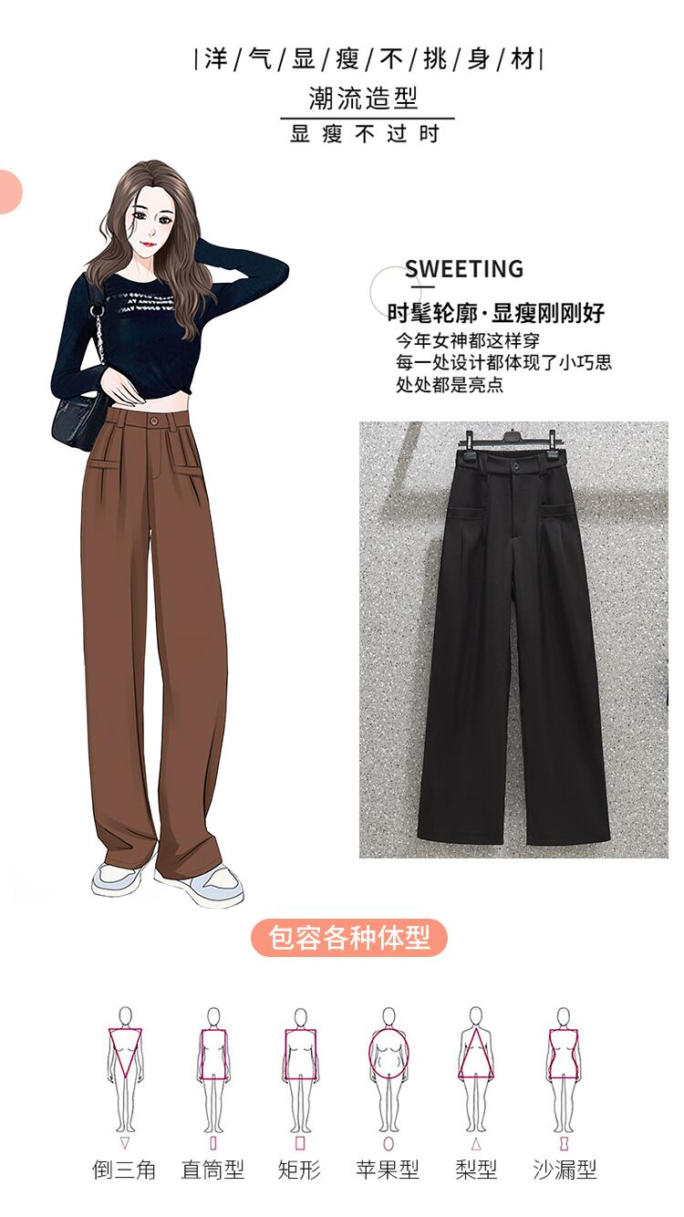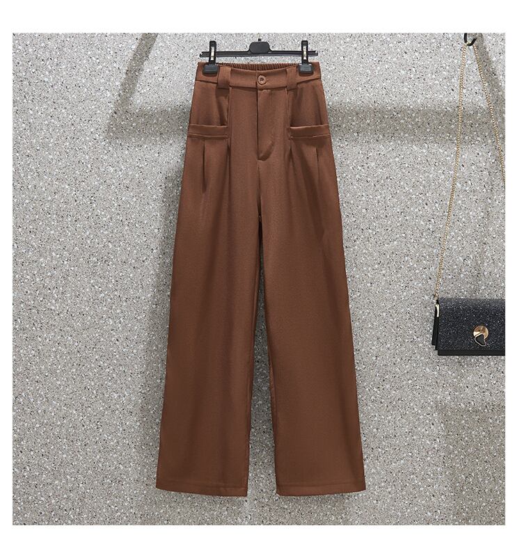 大きいサイズの婦人服 2023 春の新しい太った妹の年齢を減らす垂直感オールマッチ ハイウエスト ヒップカバー 純色 ワイドレッグ パンツ 女性 大きめサイズ スプリング 春物 8884164994006523