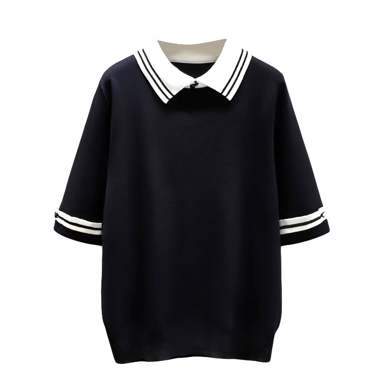 プラスサイズの婦人服 2023 ファットシスター夏の新ファッション痩身気質ヒットカラーポロ襟オールマッチトップ女性 大きめサイズ サマー 夏物 8884195535932989
