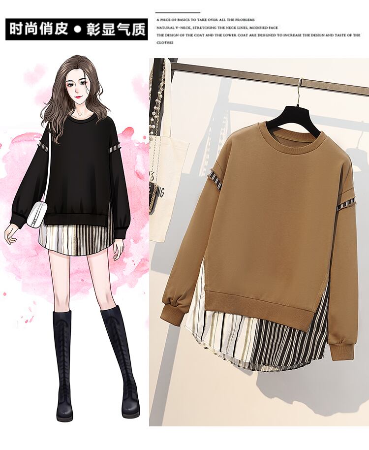 大きいサイズの婦人服 2023 春の新しいファッション ファット シスターズ ルーズで薄い気質コントラスト カラー フェイク ツーピース長袖セーター ロング 大きめサイズ スプリング 春物 8884124120575417