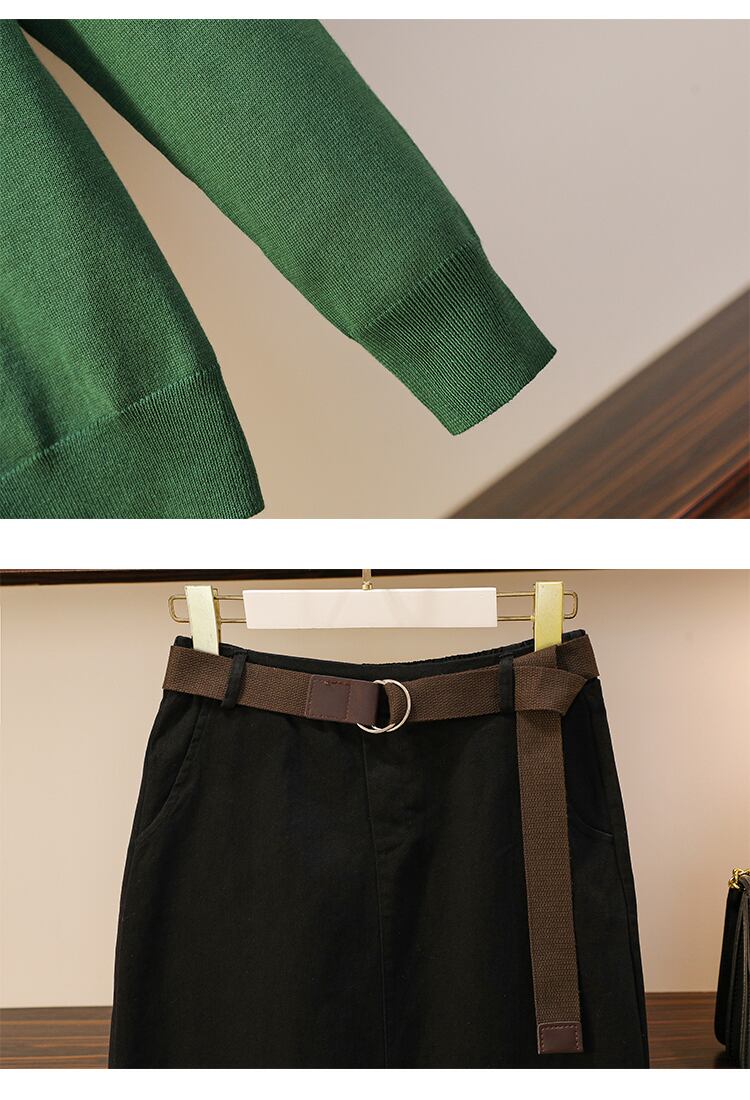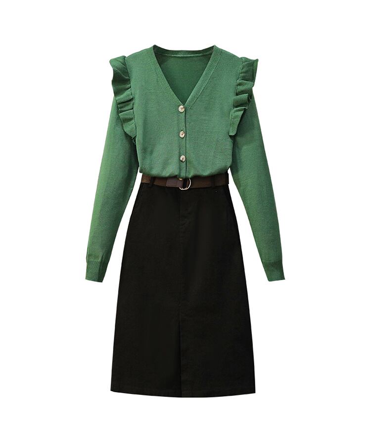 プラスサイズの婦人服 2023 ファットシスター春の新作グリーンニットカーディガンスカート痩身と年齢を減らすツーピーススーツ 大きめサイズ スプリング 春物 8884118744842548