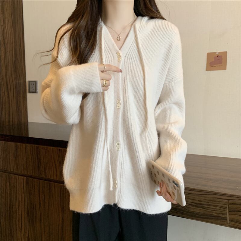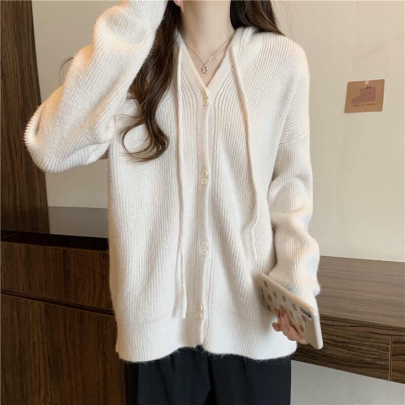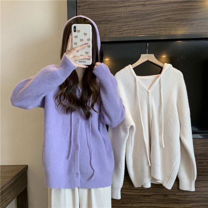 プラスサイズの婦人服 2023 トレンディな女性の春の新しい太った姉妹スタイルのゆったりとしたデザインのフード付きのシングルブレストのセーターの潮 大きめサイズ スプリング 春物 8884166553533216