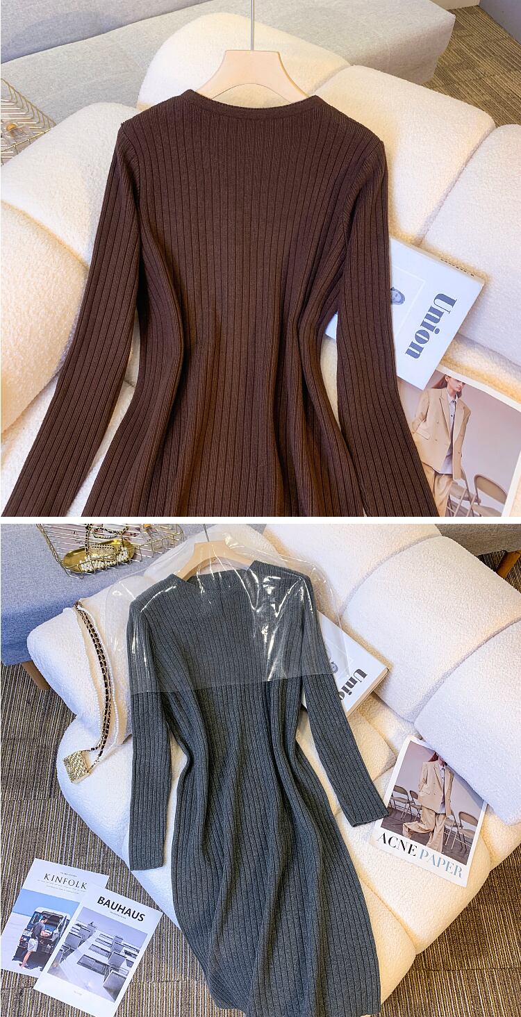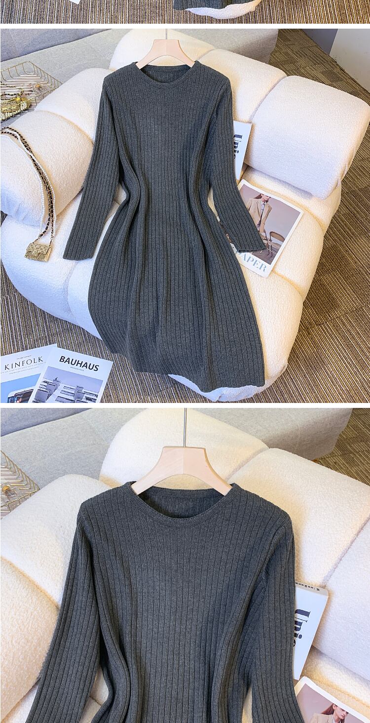プラスサイズの婦人服2023ファットシスター春の新作ラウンドネックオールマッチ長袖スリムミッドレングスニットドレス ロング 大きめサイズ スプリング 春物 Oネック 8884115998571900
