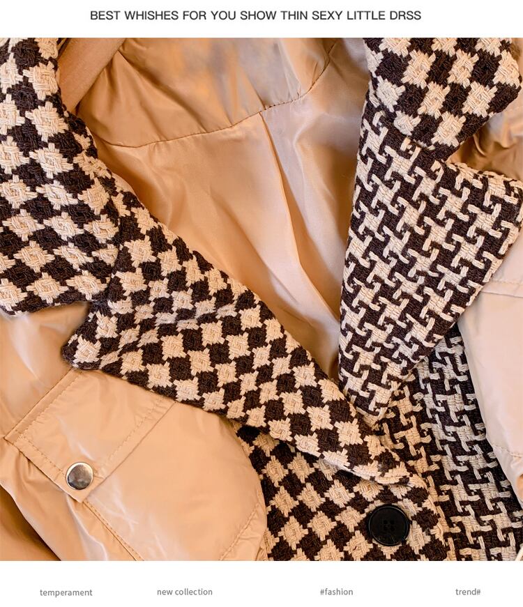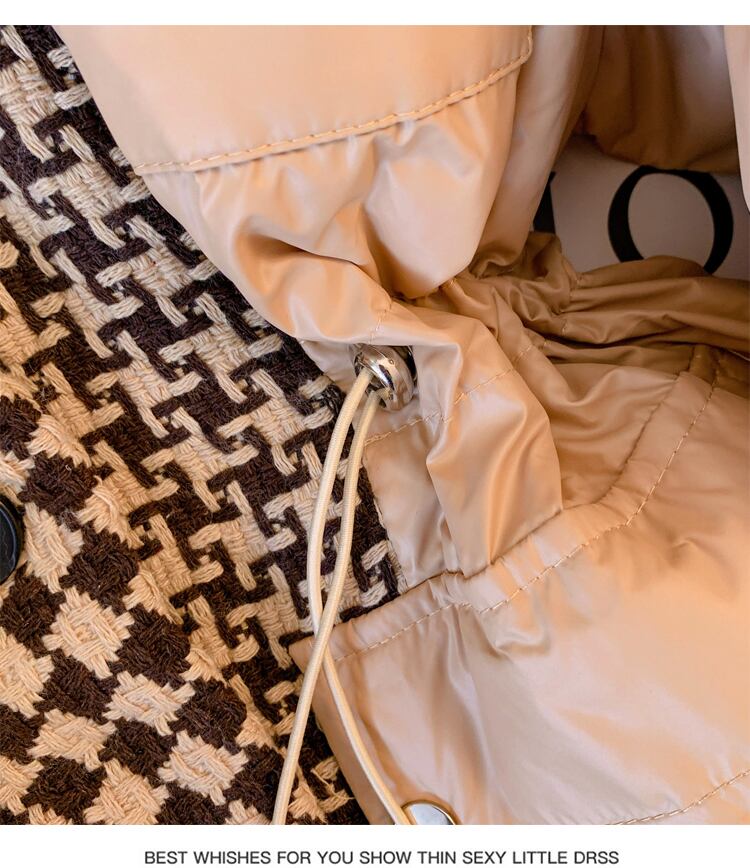 プラスサイズの婦人服 2023 脂肪姉妹春の新デザインセンス千鳥格子スプライシング気質の服の綿のコートの女性 コットン 大きめサイズ スプリング 春物 8884113425120651