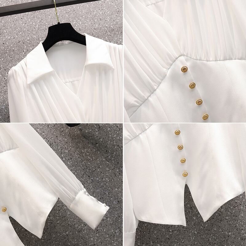 大きいサイズの婦人服 2023 春服脂肪姉妹新しいデザインセンスフレンチ気質自己修養ファッションシャツ女性トップ 大きめサイズ スプリング 春物 8884168490816706