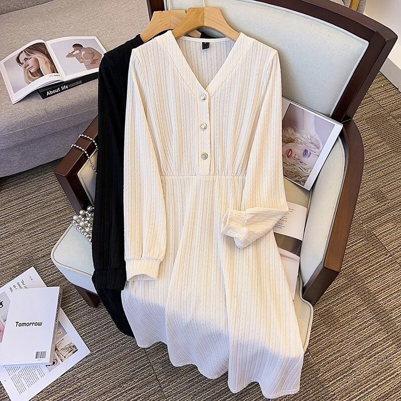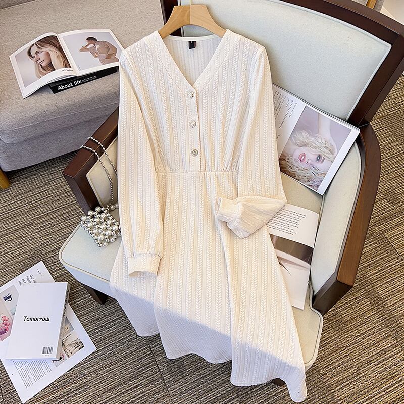 大きいサイズの婦人服 2023 トレンディな女性の春の新しいスタイルの太った姉妹のファッションの薄いフレンチ ウエスタン スタイルの優しい風ウエスト ドレス 大きめサイズ スプリング 春物 8884110449202030