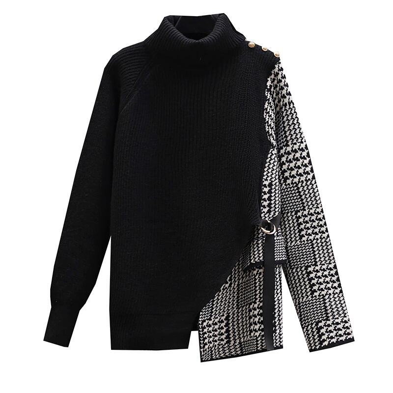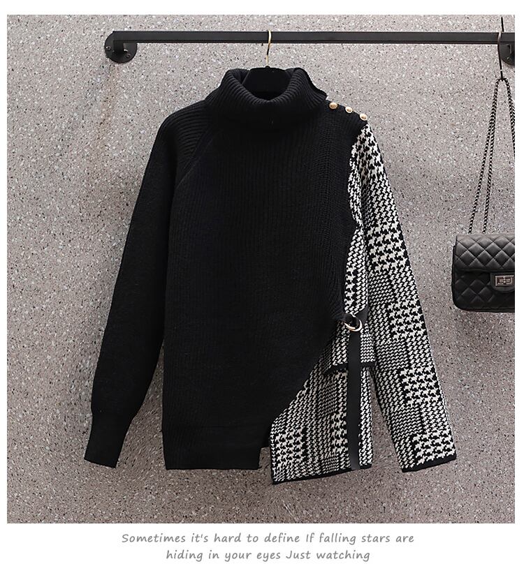 プラスサイズの婦人服2023ファットシスター春の新作ルーズハーフハイカラーレトロスリム長袖ニットボトムシャツ ロング 大きめサイズ スプリング 春物 8884196883883449