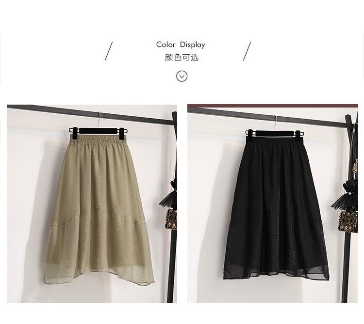 プラスサイズの婦人服2023ファットシスター春の新バージョン弾性ウエストAラインガーゼスカートオールマッチビッグスイングスカート エラスティック 伸縮 大きめサイズ スプリング 春物 8884194322128978