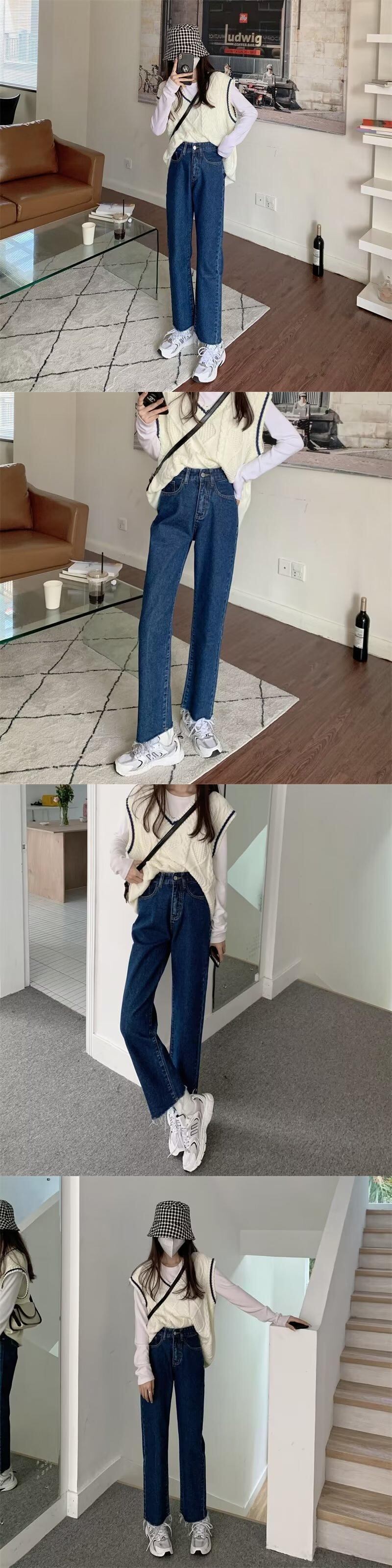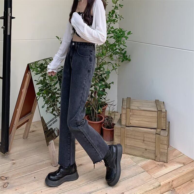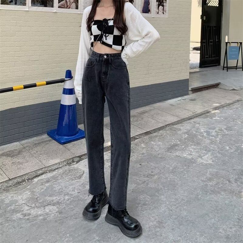プラスサイズの婦人服 2023 トレンディな女性の春の新しいファットシスターレトロブルーストレートチューブスリム弾性ハイウエストデニムシガレットパンツ ハイウェスト エラスティック 伸縮 大きめサイズ スプリング 春物 8884134071842733