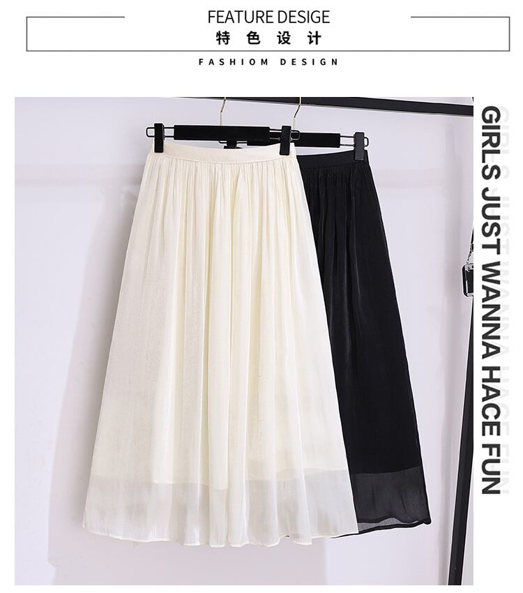 大きいサイズの婦人服 2023 春服脂肪姉妹新しい痩身と年齢を減らすゴールド シルク ファッション オール マッチ A ライン スカート女性 大きめサイズ スプリング 春物 Aライン 8884141406697079