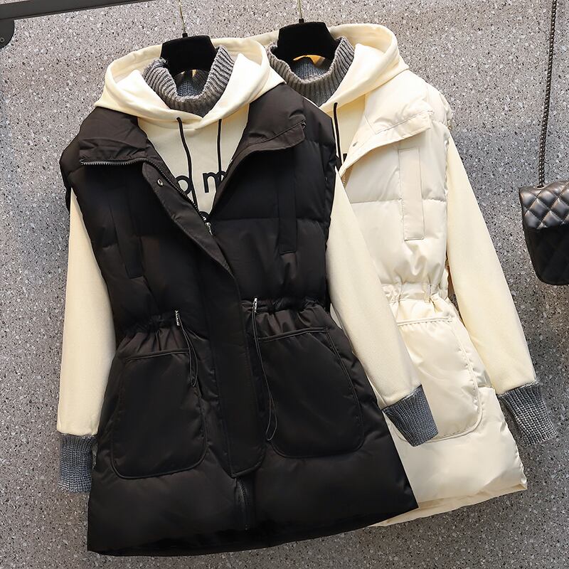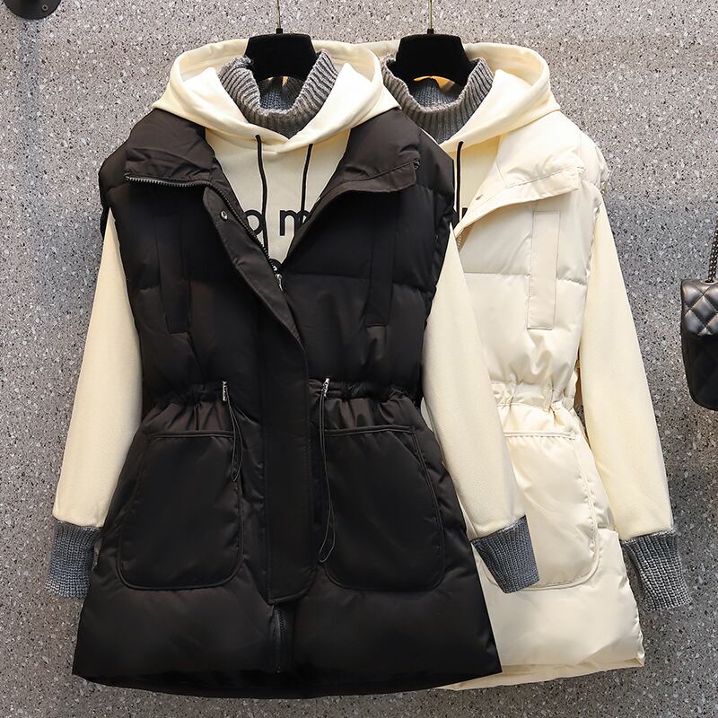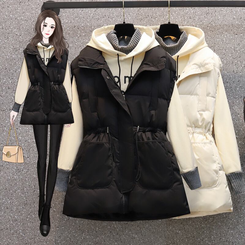 色:黒のベスト,白いベスト,アプリコットフード付きスウェットシャツ