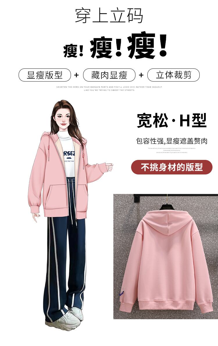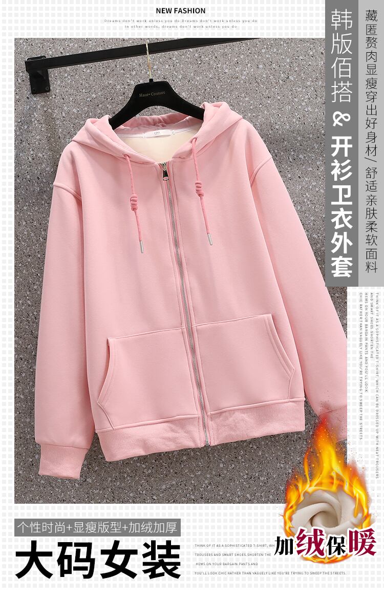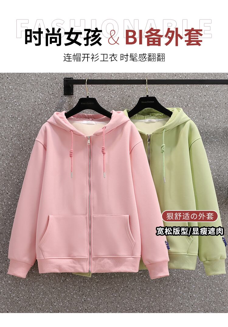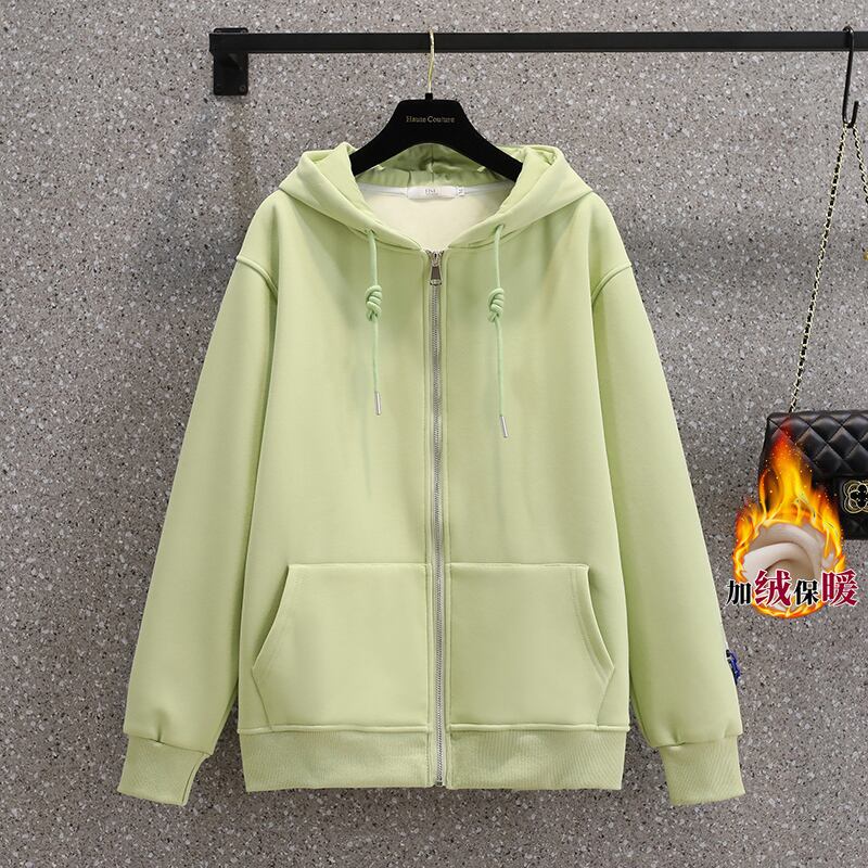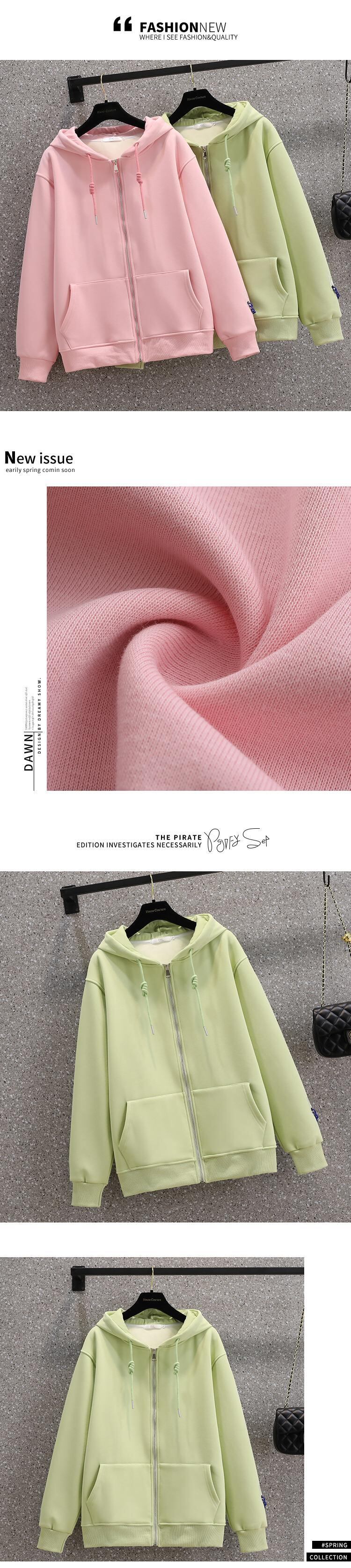 プラスサイズの婦人服 2023 ファットシスター春の新緩い無地ジッパーカーディガンミッドレングス肥厚コート女性 大きめサイズ スプリング 春物 ソリッドカラー 8884120954895129