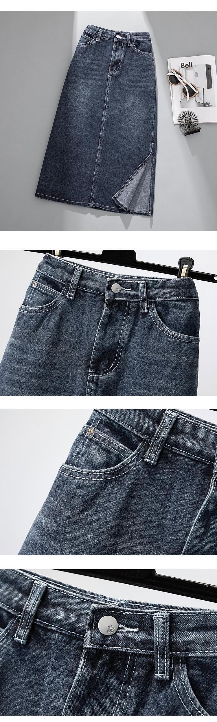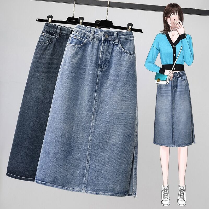 大きいサイズの婦人服 2023 トレンディな女性の春の新しいファットシスター ハイウエスト ミッドレングス スリム スリット バッグ ヒップ デニム スカート ハイウェスト 大きめサイズ スプリング 春物 888414841248032
