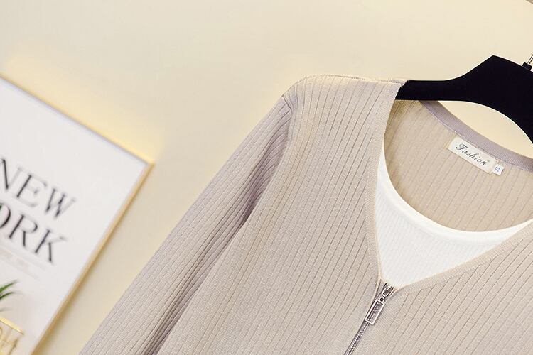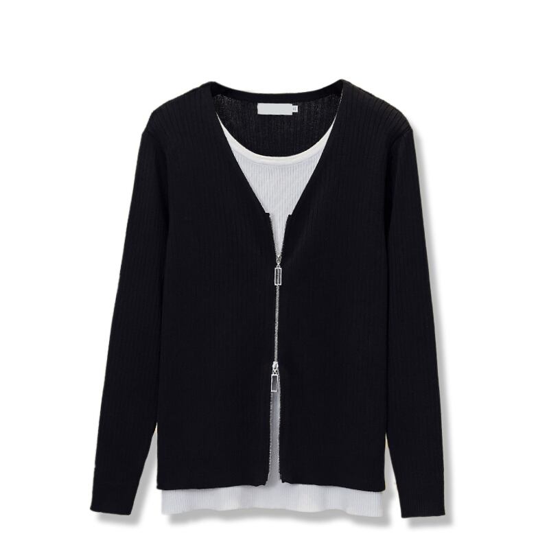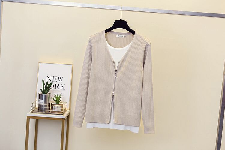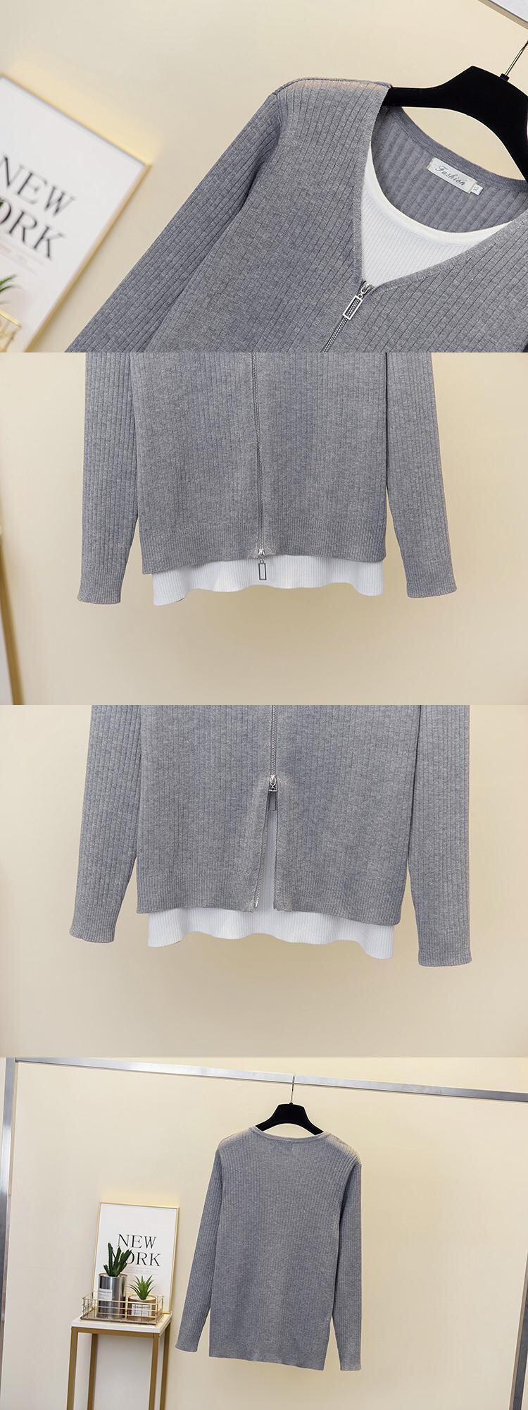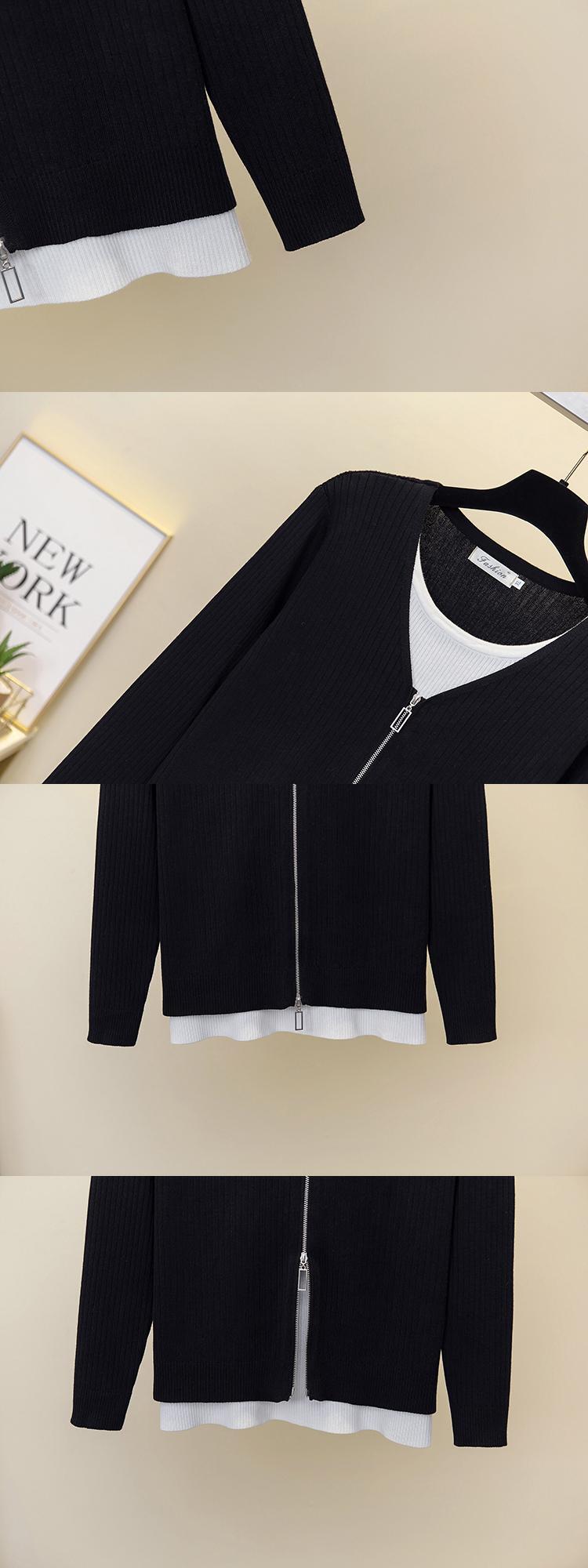 大きいサイズの婦人服 2023 春の新しいファット シスター eign スタイルのデザイン感ニッチ フェイク ツーピース スプライシング薄いセーター 大きめサイズ スプリング 春物 8884148605124781