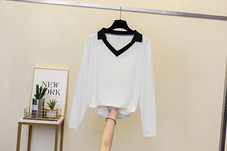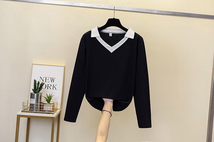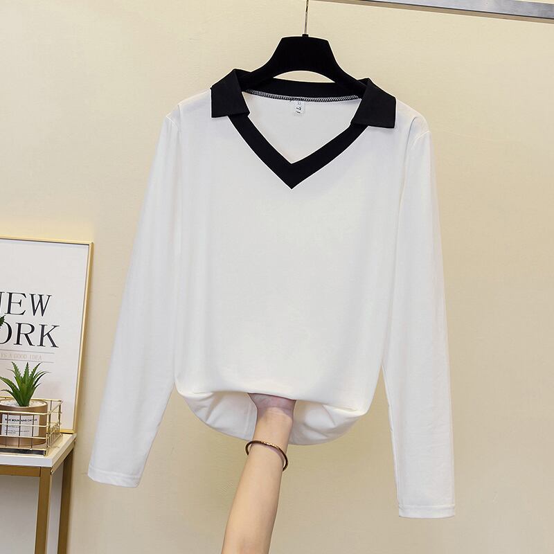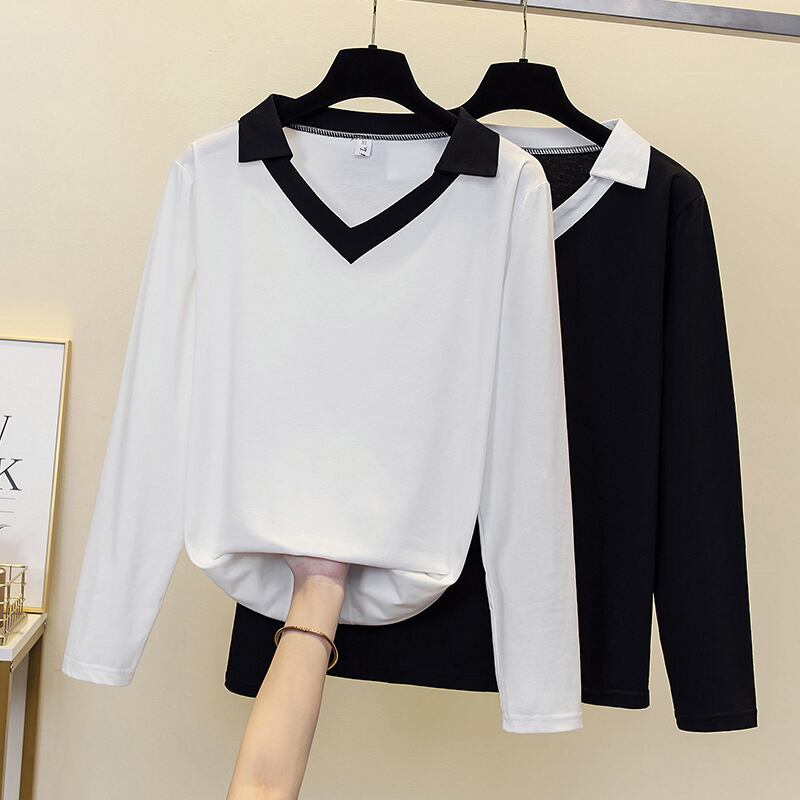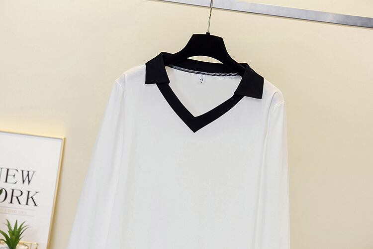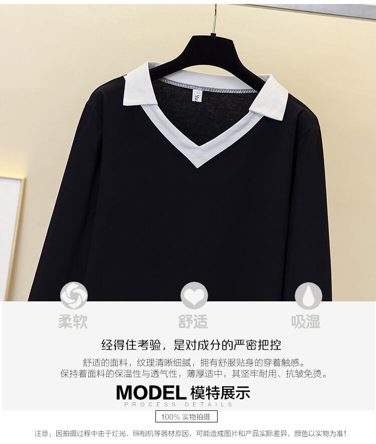 大きいサイズの婦人服は2023年春の新しいデブシスターの気質でゆったりとした年齢を減らしますオールマッチの長袖の配色の西洋風のトップ ロング 大きめサイズ スプリング 春物 8884192007299430