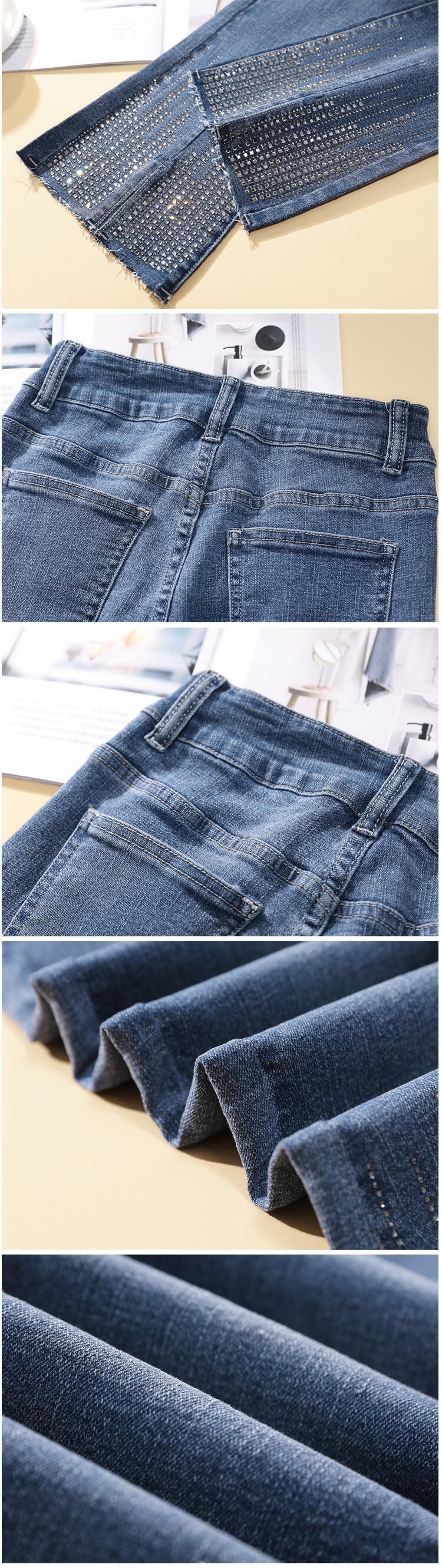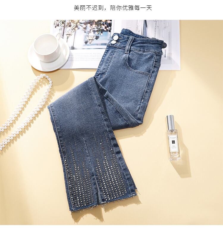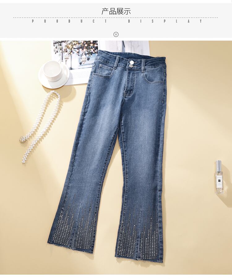 プラスサイズの婦人服 2023 春の新脂肪姉妹弾性ハイウエスト痩身マイクロスリットファッションジーンズ女性 エラスティック 伸縮 大きめサイズ スプリング 春物 8884114354007464