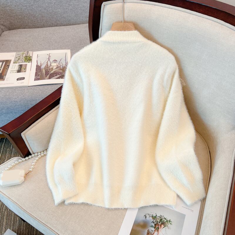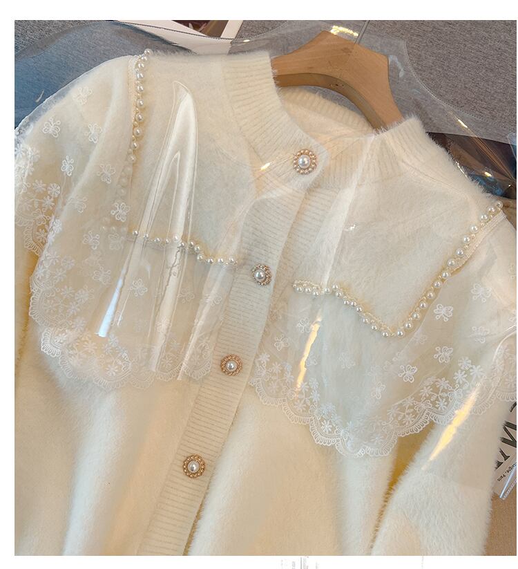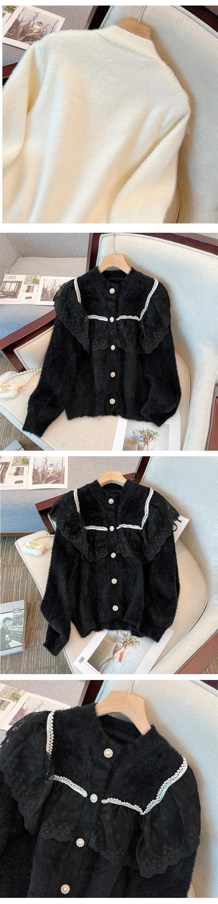プラスサイズの婦人服 2022 冬の新しいファットシスター年齢を減らすスプライシングメッシュフリル V ネックジャカードニットトップ 大きめサイズ ウィンター 冬物 Vネック 8884124694499477