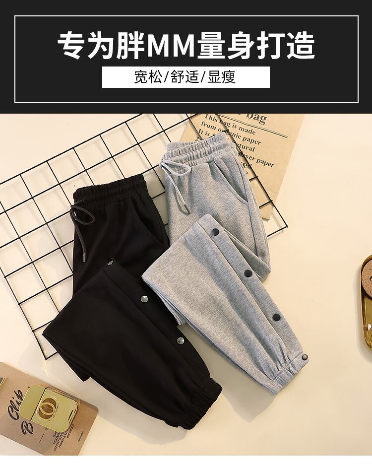 プラスサイズの婦人服 2023 春服ファットシスターズ新ファッションハーレムパンツ緩いスリムカジュアルボタンスウェットパンツ 大きめサイズ スプリング 春物 8884164063614046