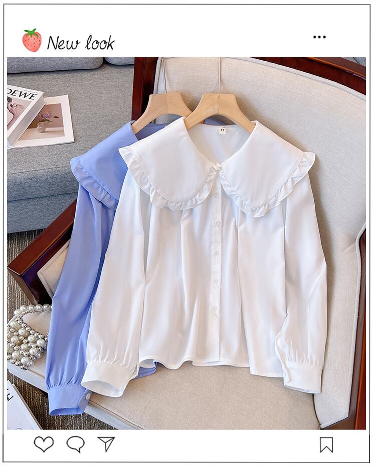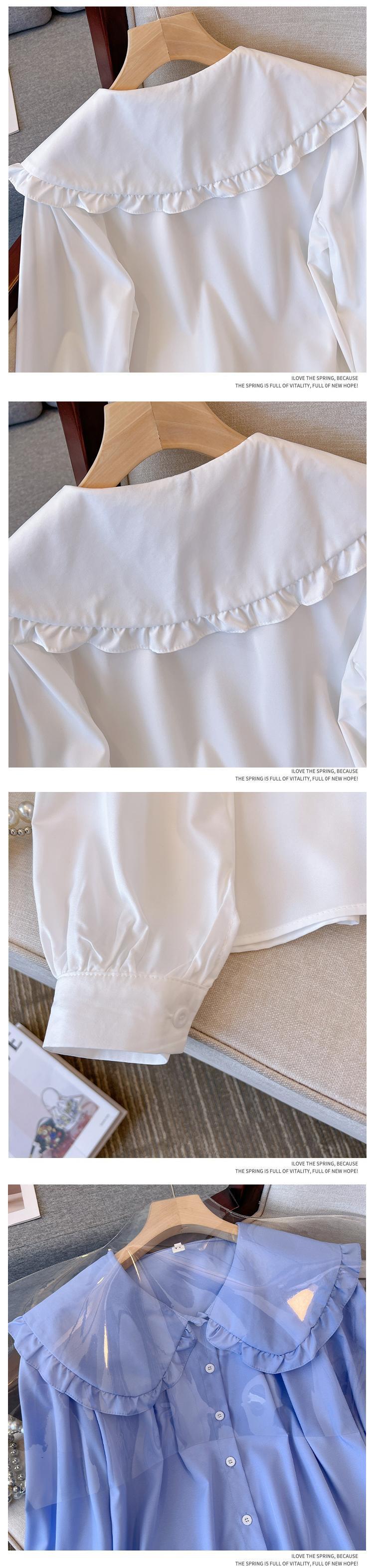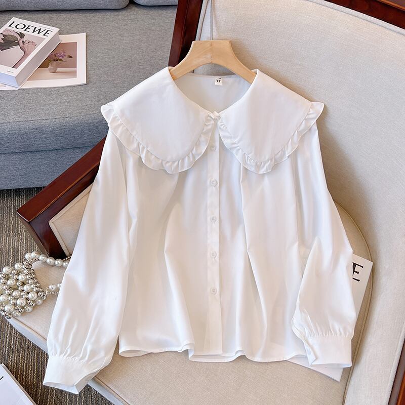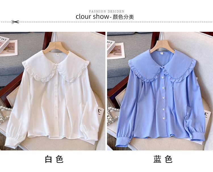 大きいサイズの婦人服 2023 春服脂肪姉妹新しいスタイルの気質蓮の葉縁人形ラペル長袖シャツ女性 ロング 大きめサイズ スプリング 春物 8884168500446230