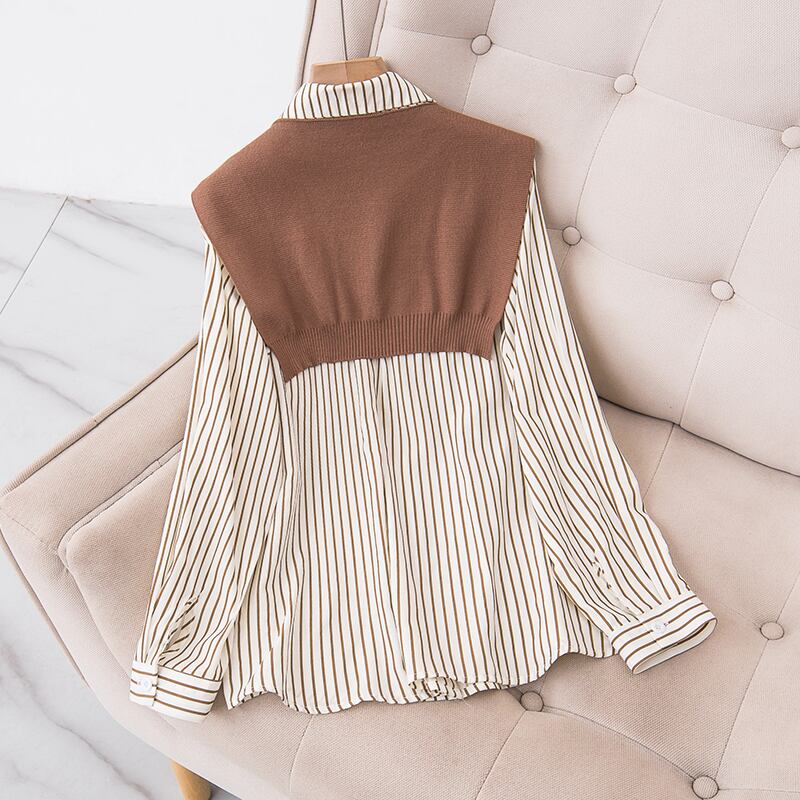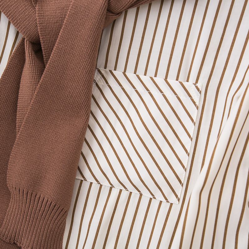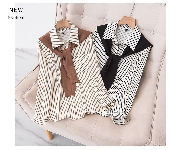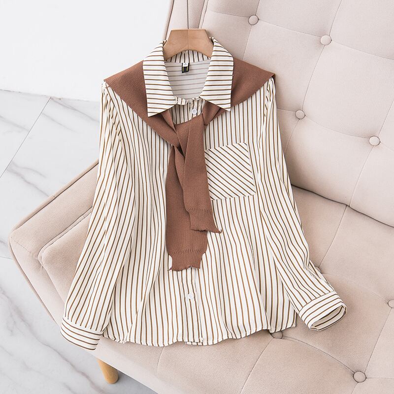 大きいサイズの婦人服 2023 春服ファット姉妹新しいファッションの年齢を減らすショール ストライプ シャツ痩身ツーピース スーツ 大きめサイズ スプリング 春物 8884160341472052