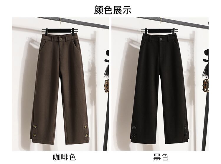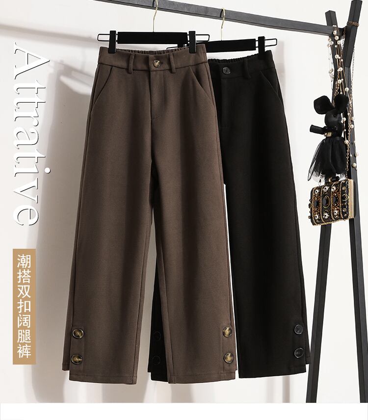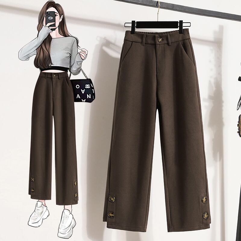 プラスサイズの婦人服 2023 ファットシスター春の新作ウール九点ストレートレッグパンツハイウエストスリムカジュアルワイドレッグパンツ ハイウェスト 大きめサイズ スプリング 春物 8884165706437148