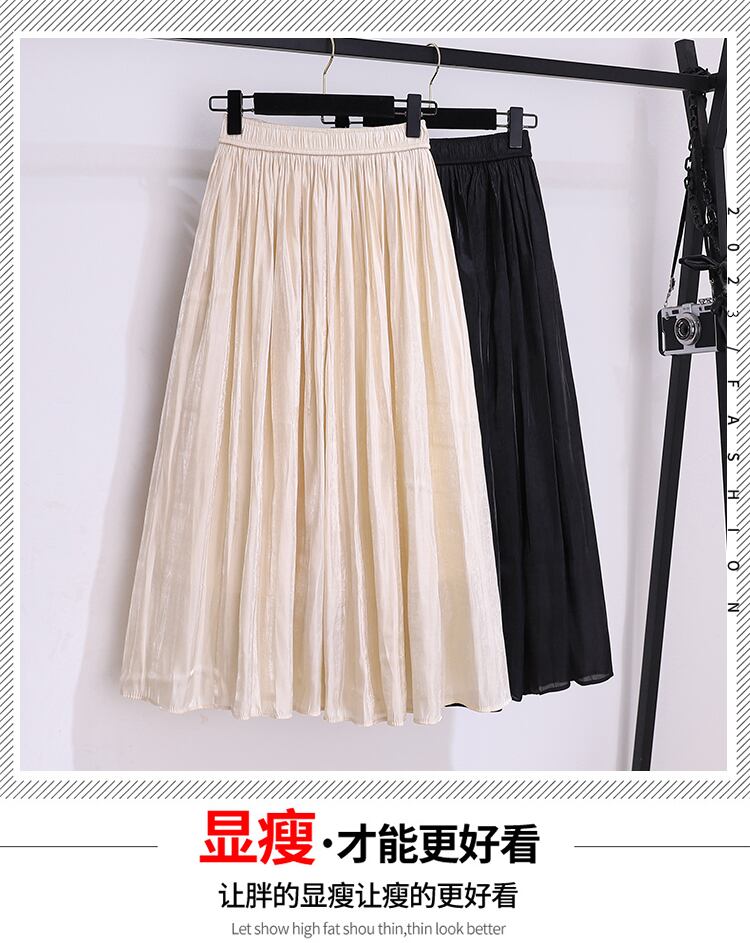 大きいサイズの婦人服 2023 春服脂肪姉妹新しい痩身と年齢を減らすゴールド シルク ファッション オール マッチ A ライン スカート女性 大きめサイズ スプリング 春物 Aライン 888415686850137