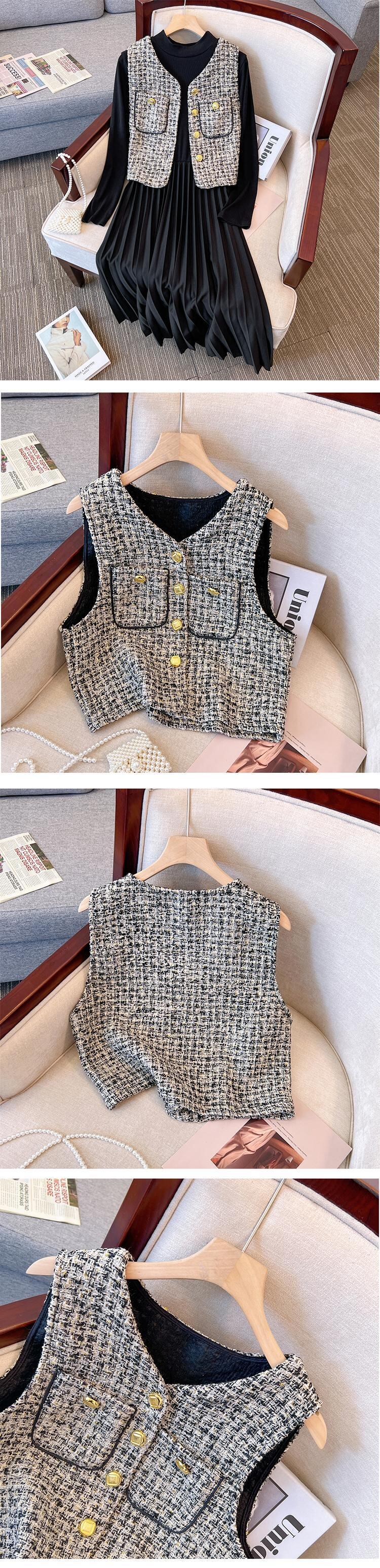 プラスサイズの婦人服 2023 ファットシスター春の新オールマッチベストコート無地薄いドレス 2 点セット 大きめサイズ スプリング 春物 ソリッドカラー 8884179422260111