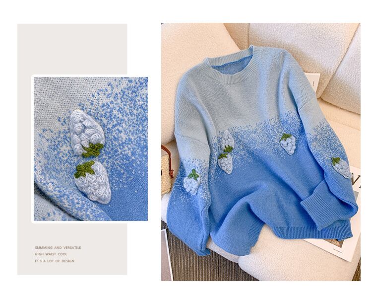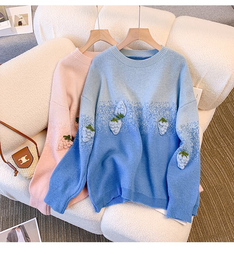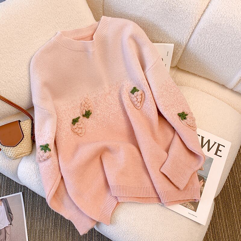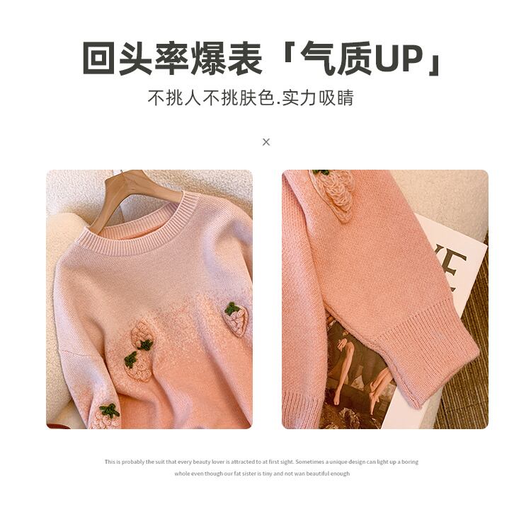 大きいサイズの婦人服 2023 脂肪姉妹春の新しい甘いセーターイチゴデザインセンス着用プルオーバーセーター 大きめサイズ 大人ガーリー スウィート キュート カジュアル スプリング 春物 8884197897215617