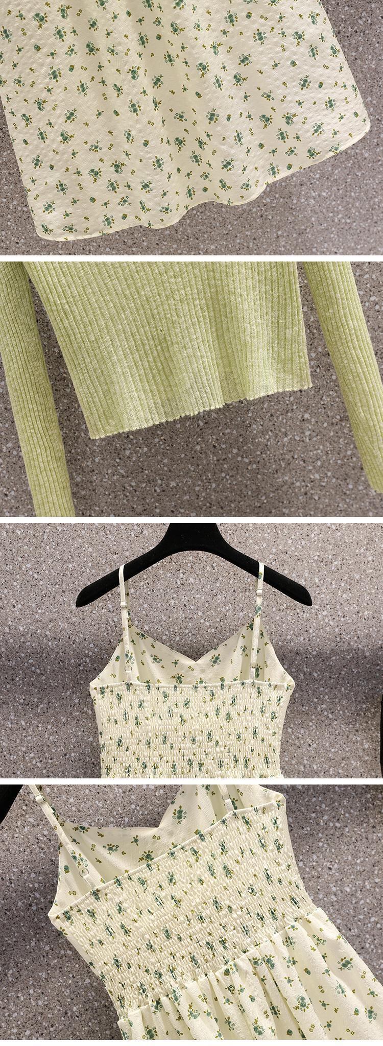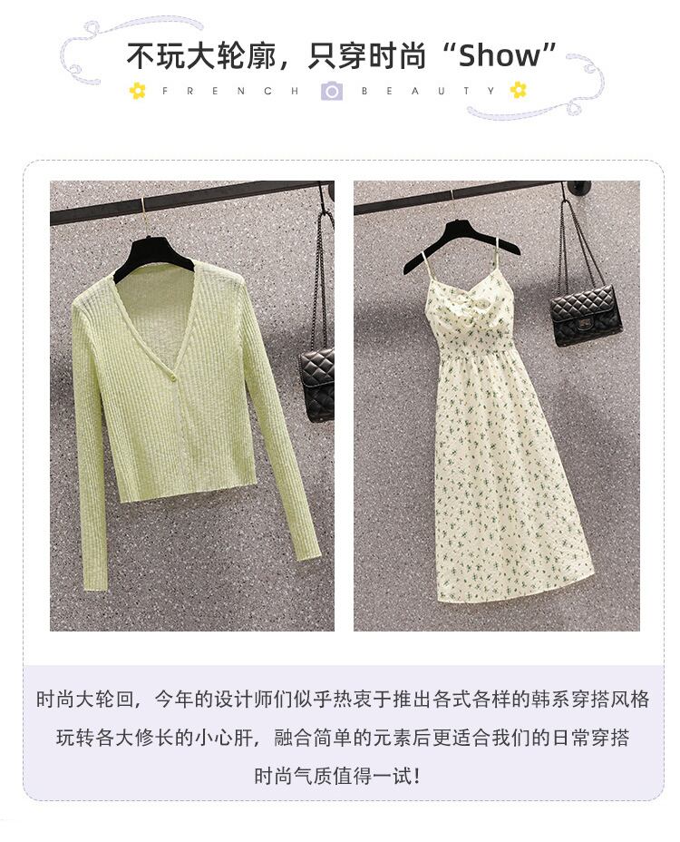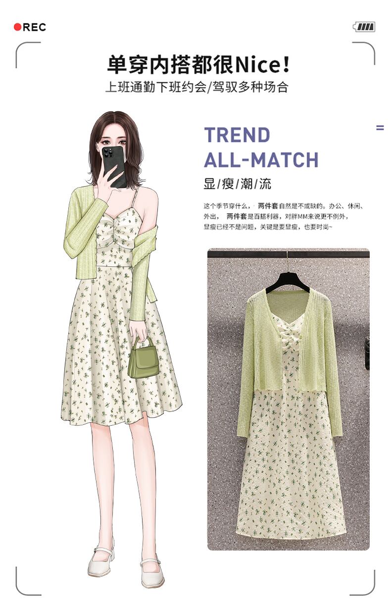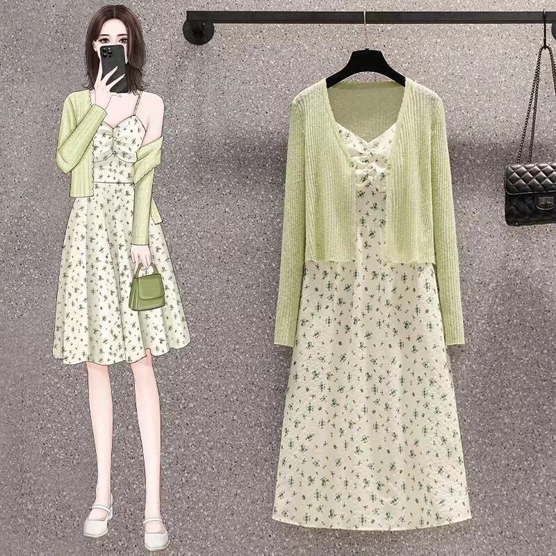 プラスサイズの婦人服 2023 夏の新しいファットシスターカーディガン年齢を減らすシャツウエストウエストサスペンダードレス 2 点セット 大きめサイズ サマー 夏物 8884196707173171