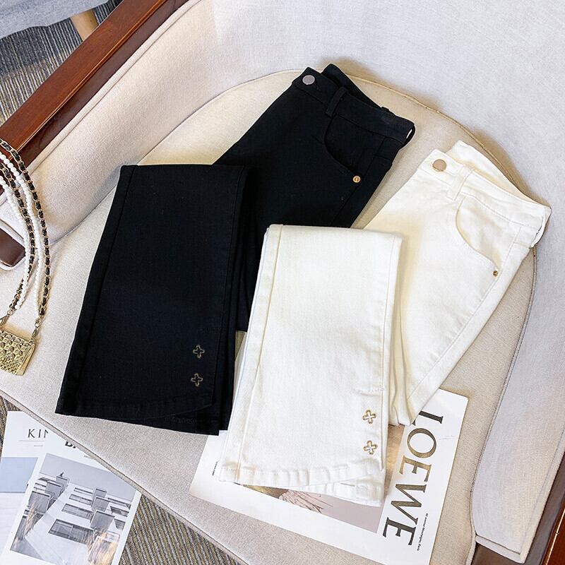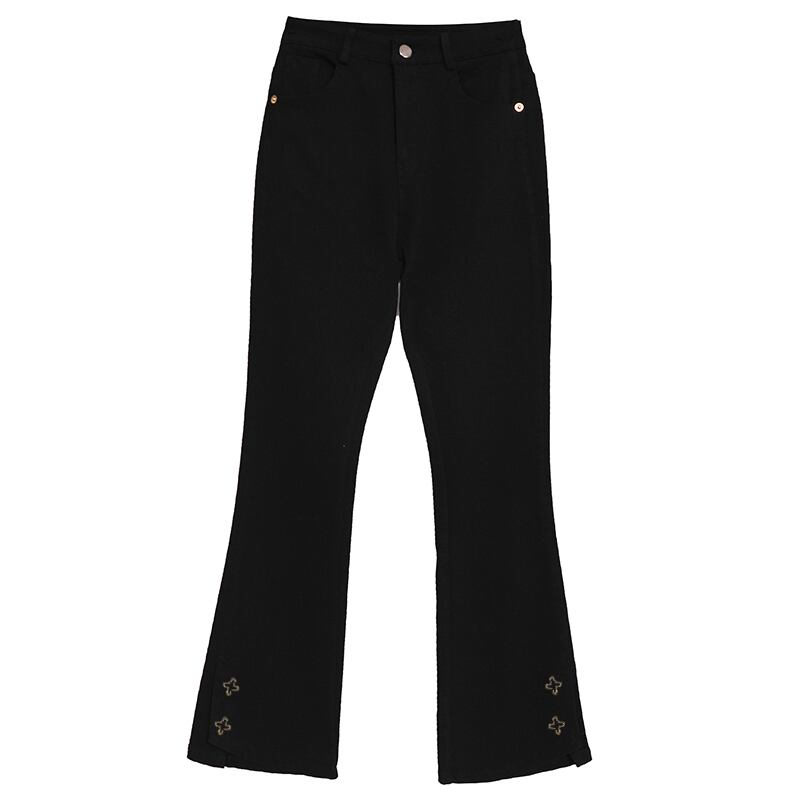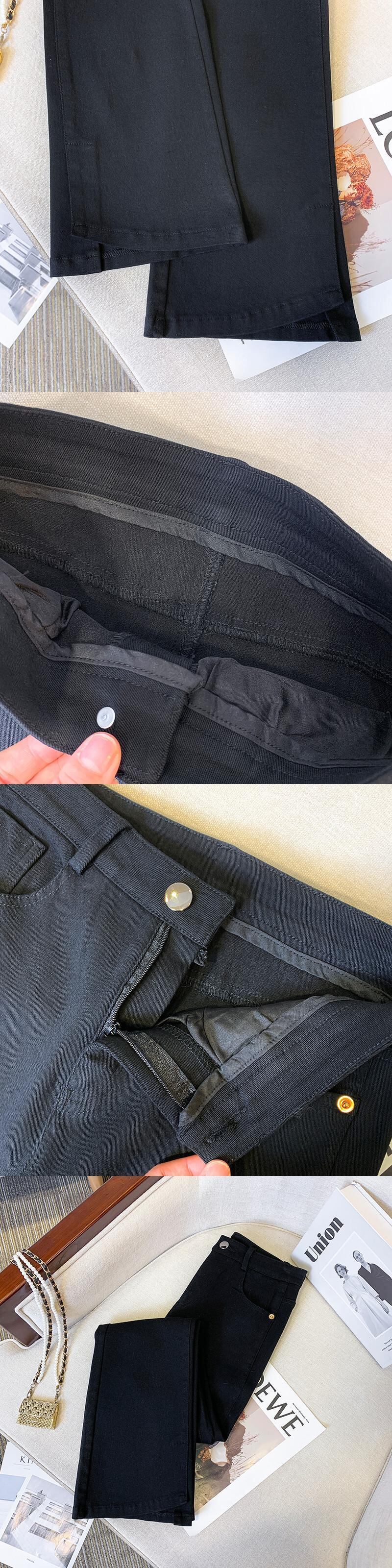 プラスサイズの婦人服 2023 春服脂肪姉妹新しいブレスト マイクロ フレア ファッション ハイ ウエスト黒スリット カジュアル パンツ ハイウェスト ブラック 大きめサイズ スプリング 春物 88841265031300