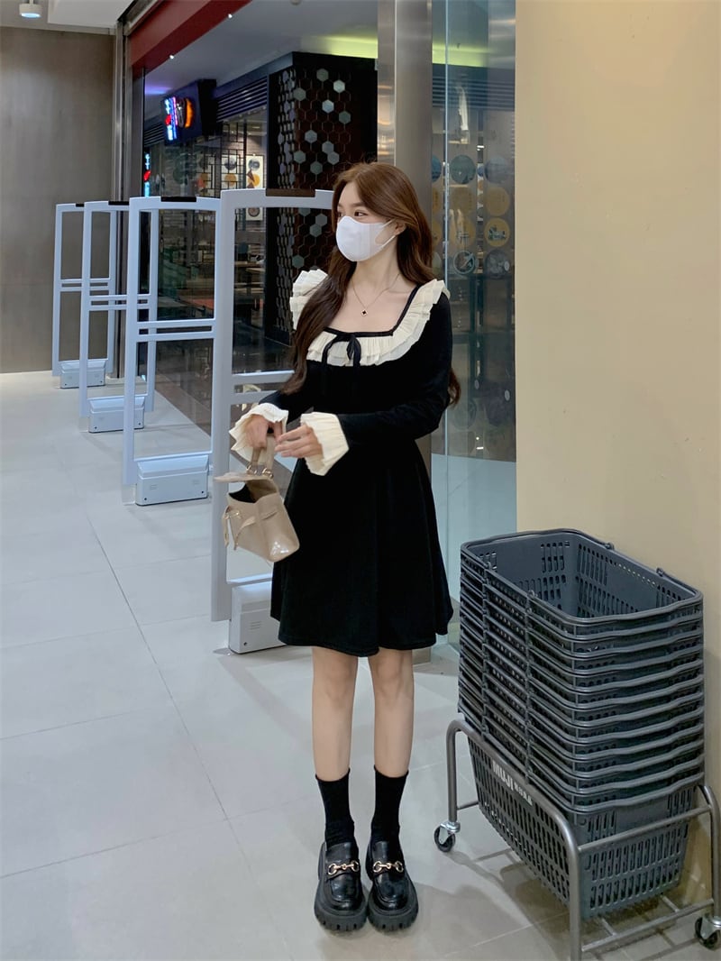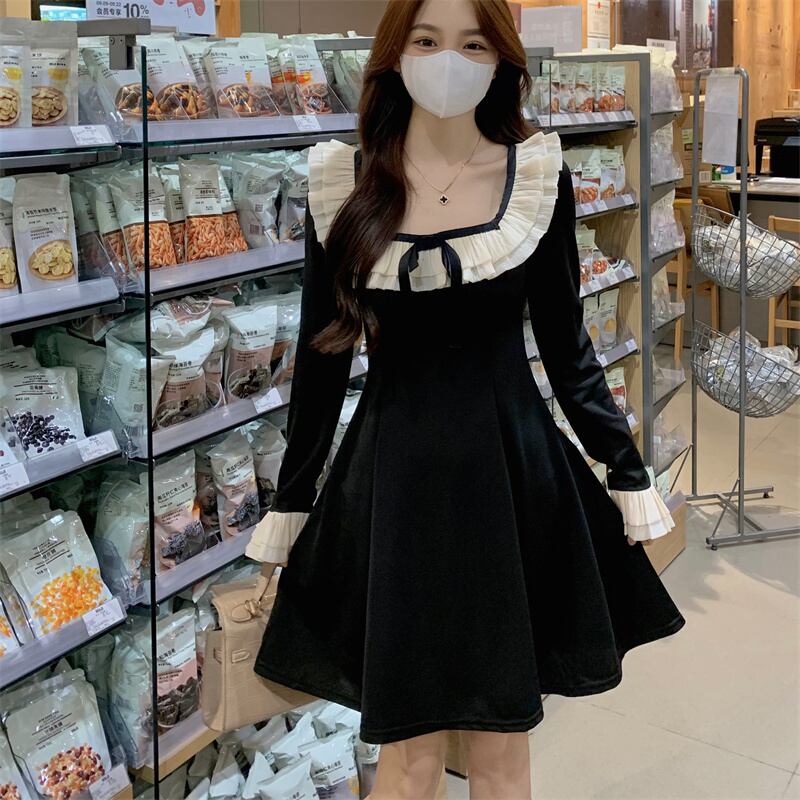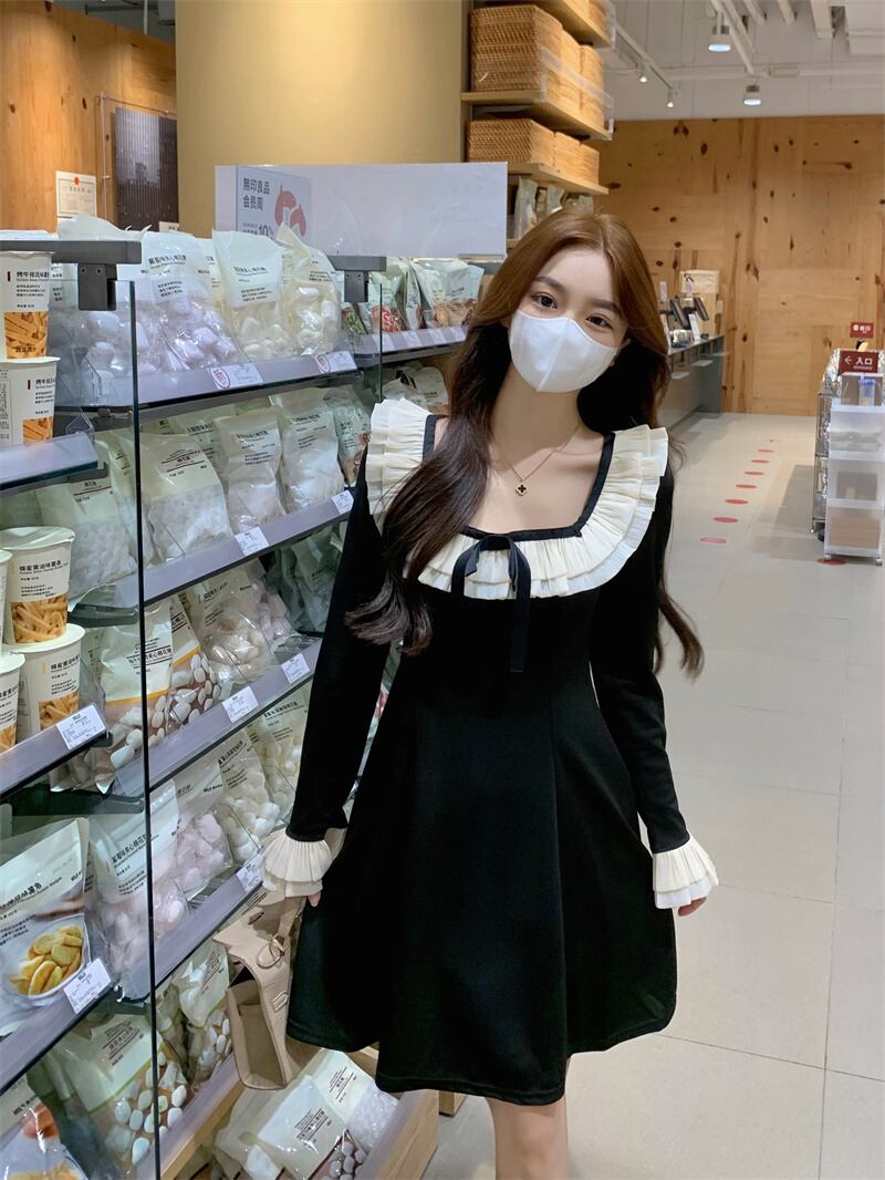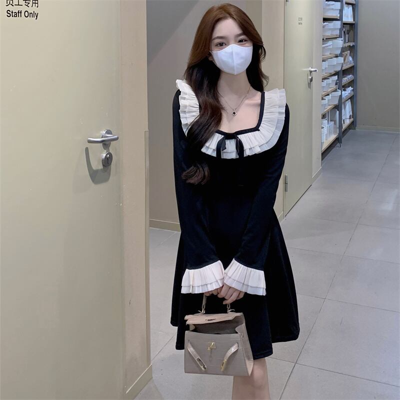 プラスサイズの婦人服 2023 春服脂肪姉妹新しいフレンチヘップバーンスタイルウエスト痩身ショートスカートドレス 大きめサイズ スプリング 春物 8884113543090087