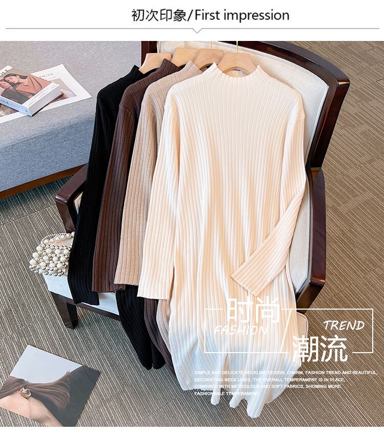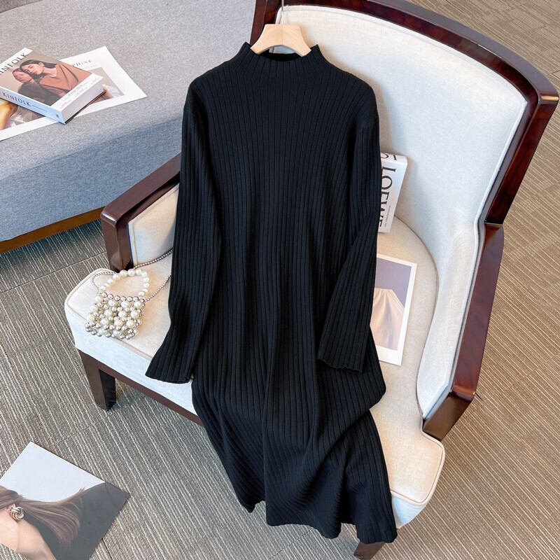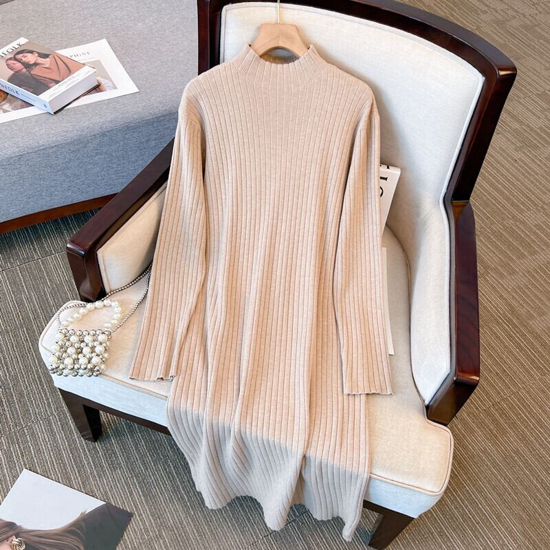 プラスサイズの婦人服2023ファットシスター春の新作オールマッチルーズインナーボトムシャツオーバーニーニットドレス 大きめサイズ スプリング 春物 8884112743762663