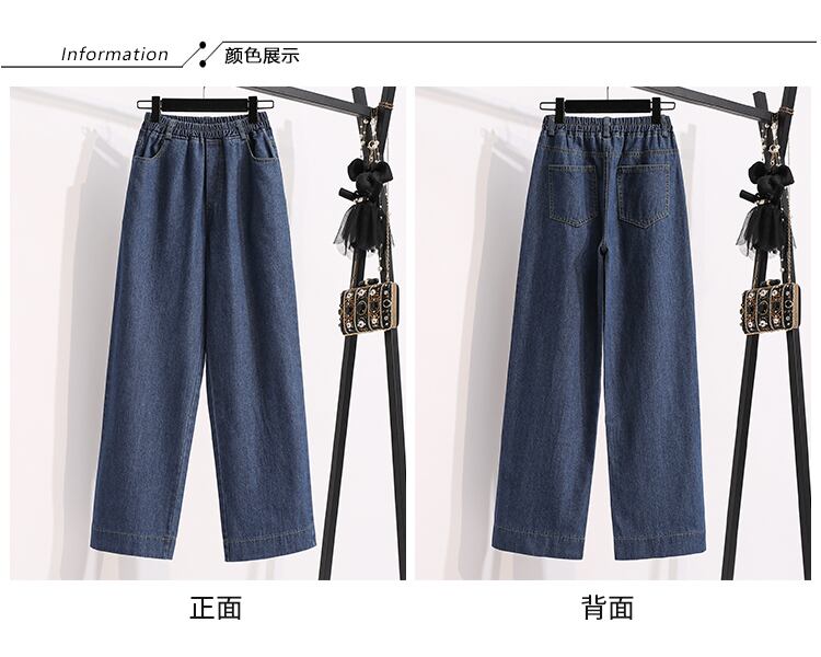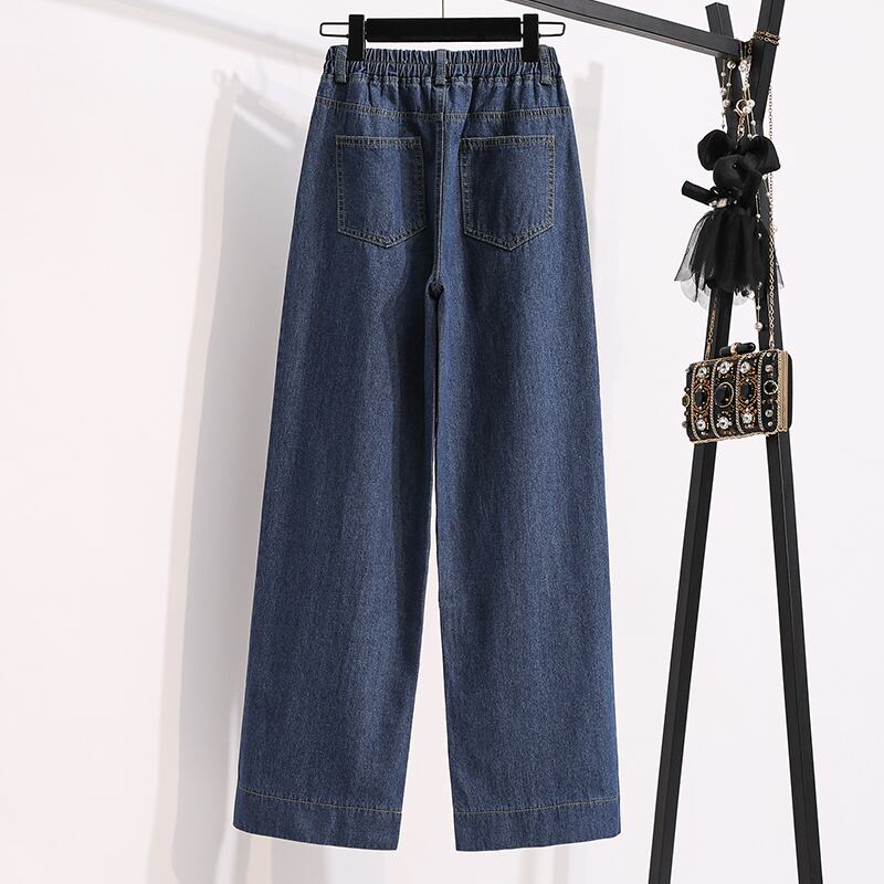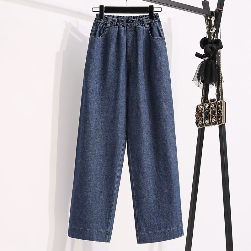 プラスサイズの婦人服2023トレンディな女性の春の新しいスタイルのファットシスタールースハイウエストストレートチューブ弾性ウエストワイドレッグパンツトレンディなジーンズ ハイウェスト エラスティック 伸縮 大きめサイズ スプリング 春物 ワイドパンツ 8884158793040158