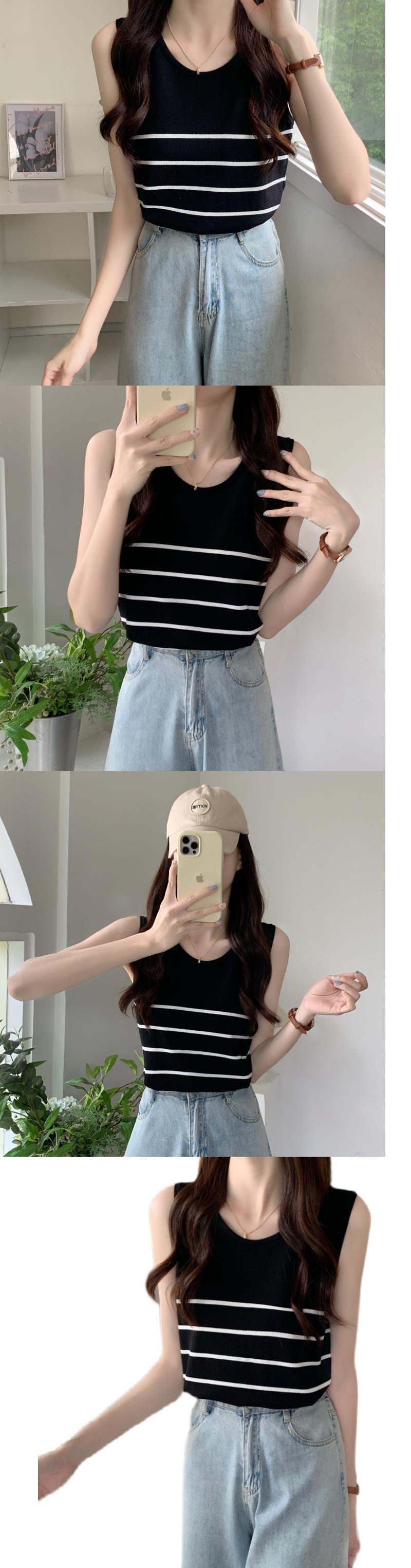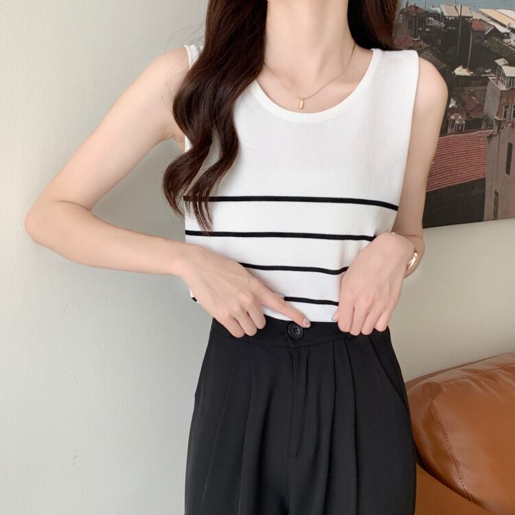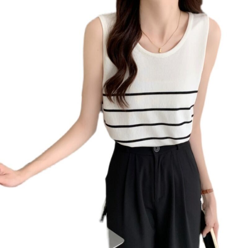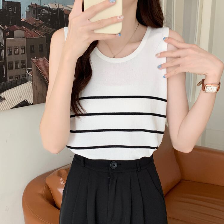 プラスサイズの婦人服2023ファットシスター夏の新しいTシャツバージョンルーズシンストライプボトムスアイスシルクベスト 大きめサイズ サマー 夏物 8884159466522348