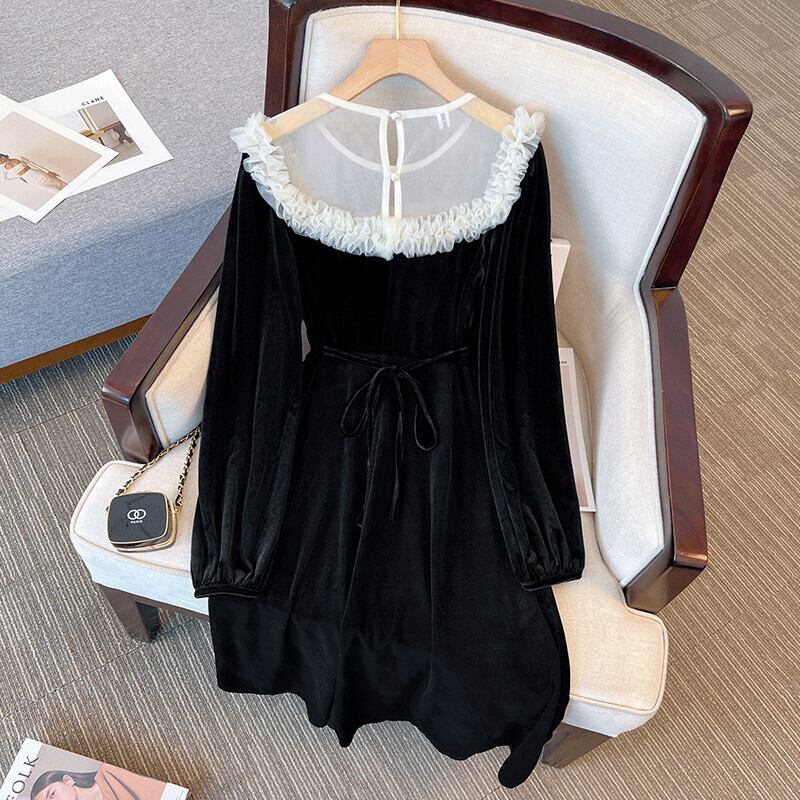 大きいサイズの婦人服 2023 春の新しいファット シスター ウエスト フランスのレトロなデザインのセンス ヘップバーン スタイルの年齢を減らすドレス 大きめサイズ スプリング 春物 8884149552080889