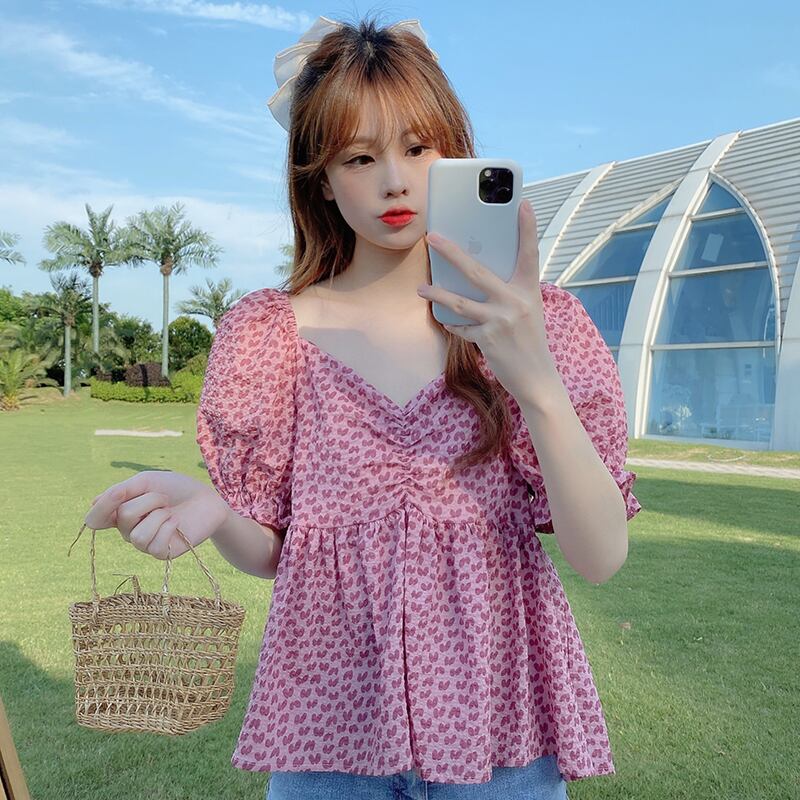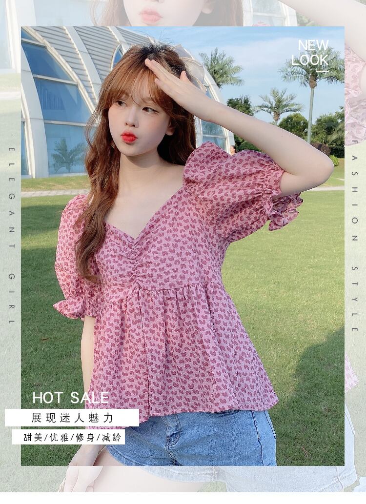 プラスサイズの婦人服 2023 ファットシスター夏の新バージョンレトロスクエアカラーラブジャカードシャツ花柄トップ 大きめサイズ サマー 夏物 スクウェア 8884186355456675