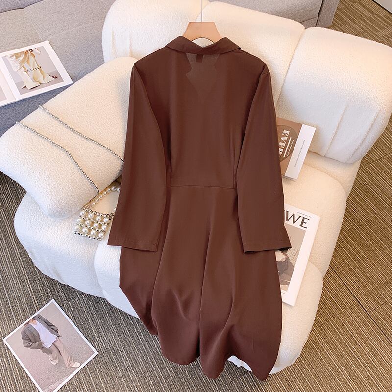 プラスサイズの婦人服 2023 春の新しいスタイルの太った姉妹の腰の気質年齢を減らすカジュアルなフレンチソリッドカラーの肉を覆うドレス 大きめサイズ スプリング 春物 8884134482935616