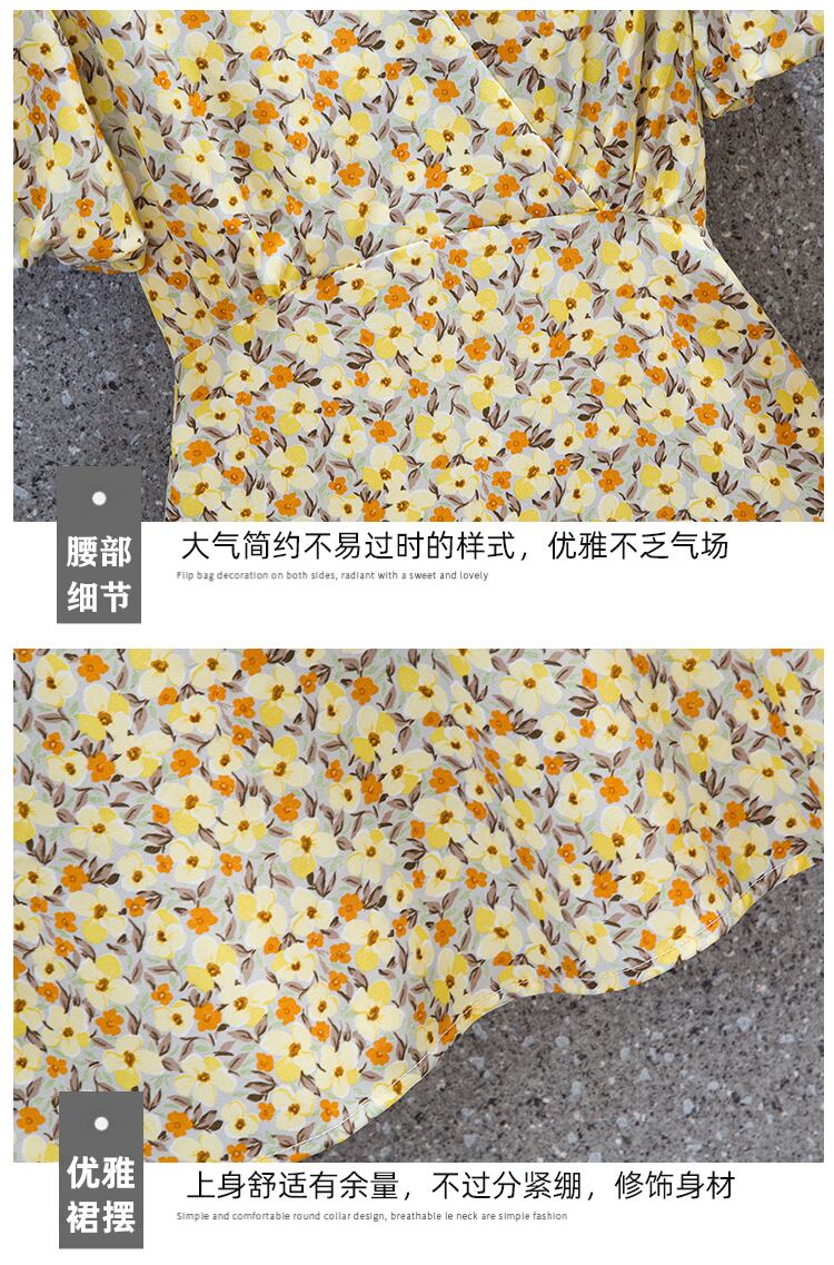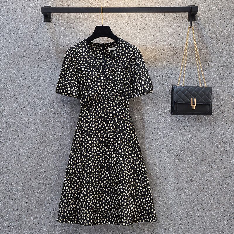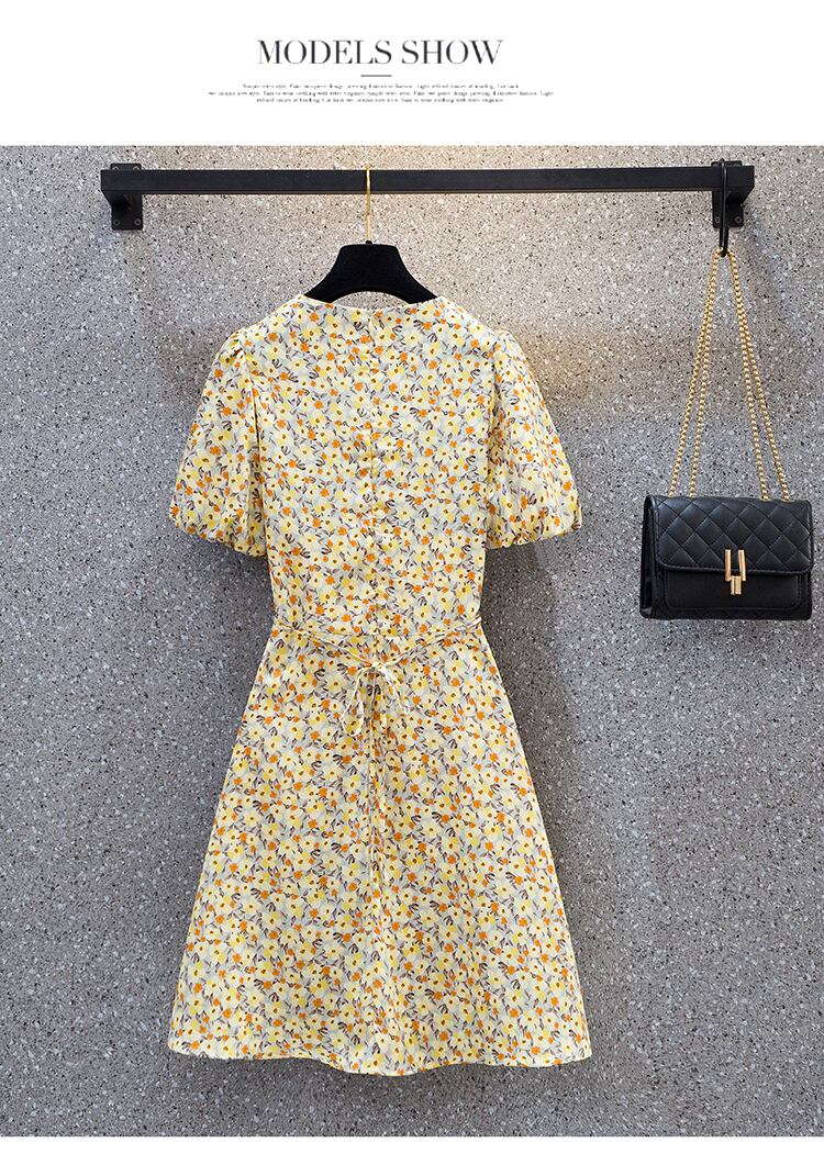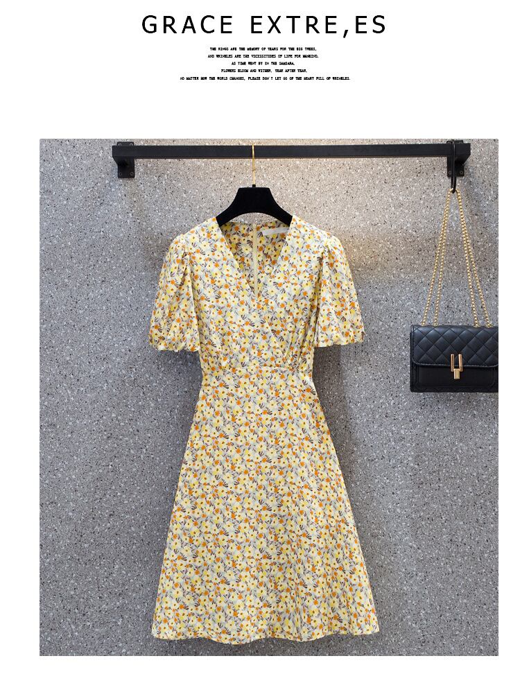 プラスサイズの婦人服 2023 夏の新しいファットシスター気質花 V ネックウエスト痩身フレンチドレス女性 大きめサイズ サマー 夏物 花柄 Vネック 8884189770696345
