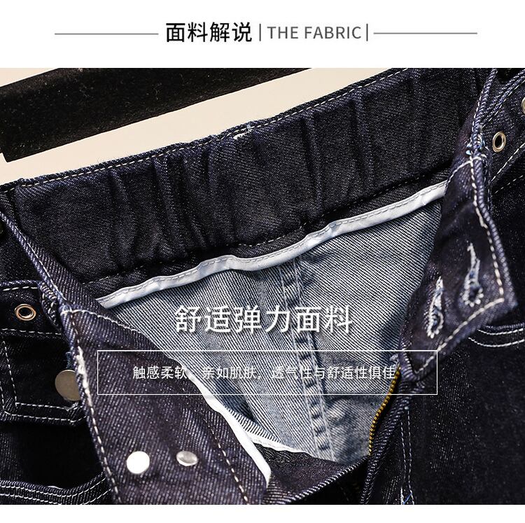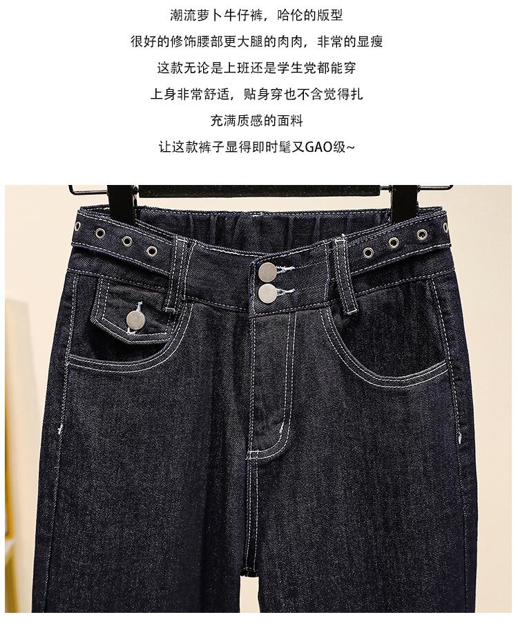 プラスサイズの婦人服 2023 春の新スタイル脂肪姉妹ファッションルーズハイウエスト薄い無地カジュアル気質ジーンズ ハイウェスト 大きめサイズ スプリング 春物 ソリッドカラー 8884115328004959