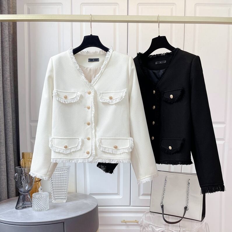 プラスサイズの婦人服 2023 春の新しいファットシスター多彩なファッション気質ショート V ネックカジュアルショートコート女性 大きめサイズ スプリング 春物 Vネック 8884168342242317