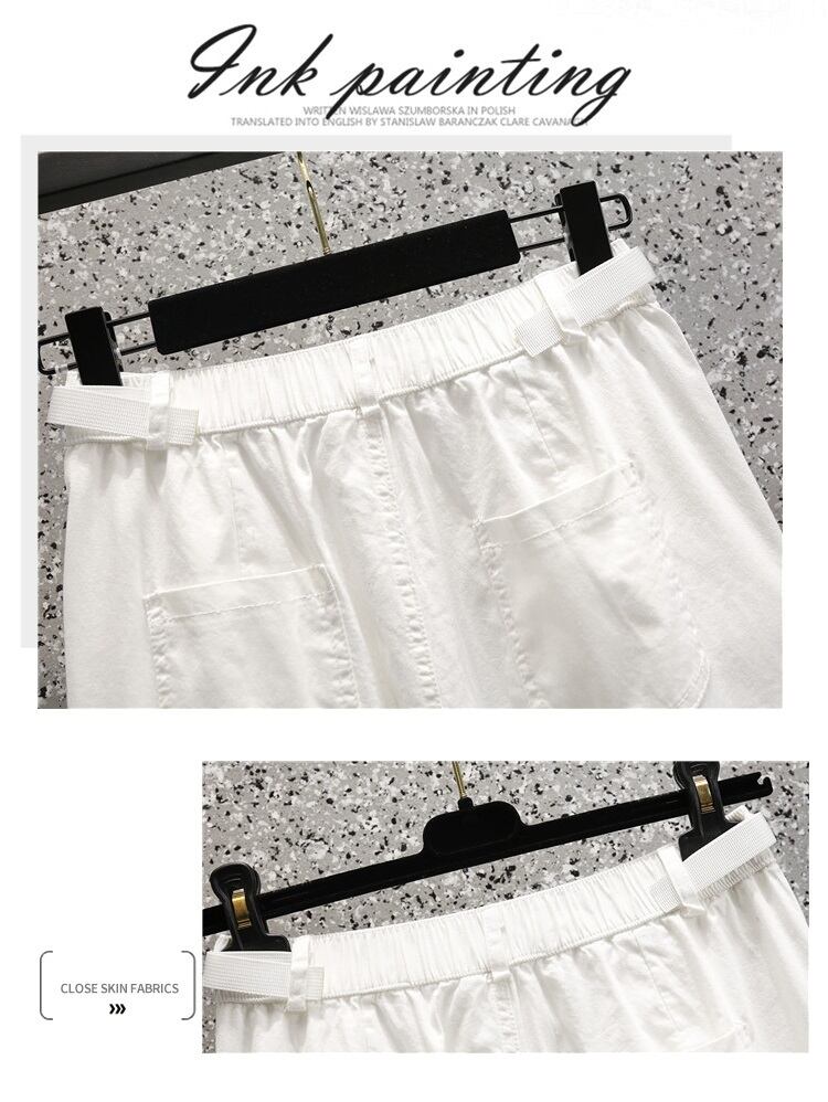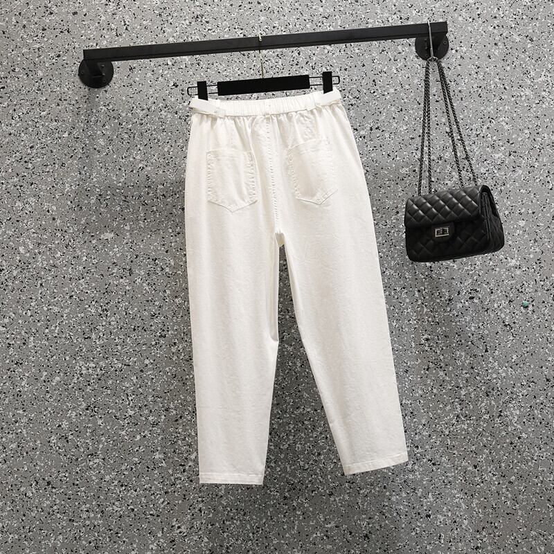 大きいサイズの婦人服 2023 春の新しいカジュアル オールマッチ ゴム ウエスト ルーズ クロップド パンツ 小さな足の太った姉妹 エラスティック 伸縮 大きめサイズ スプリング 春物 8884199138014298
